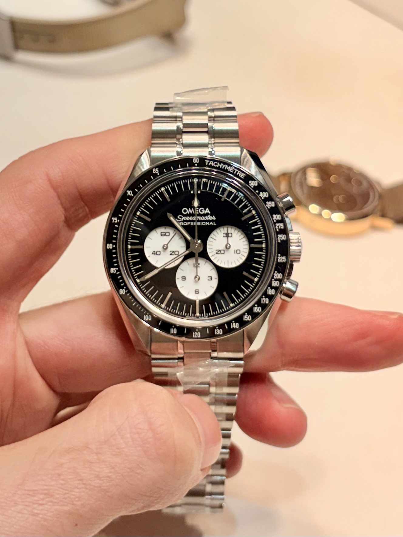 Het voelt echt als een meer luxury horloge welke concurreert met Rolex, terwijl de Moonwatch meer een echte toolwatch uitstraling heeft gefocust op bruikbaarheid. Ik houd nou eenmaal van shiny dus ik ben fan ![]()