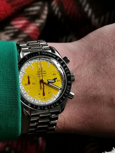 Wel een beetje een vreemde eend in de bijt, maar in mijn ogen een prachtige speedmaster. Perfecte maat voor mijn wat kleinere polsen en zoveel moois te beleven op die plaat!