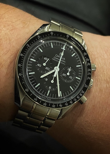Wel een beetje een vreemde eend in de bijt, maar in mijn ogen een prachtige speedmaster. Perfecte maat voor mijn wat kleinere polsen en zoveel moois te beleven op die plaat!