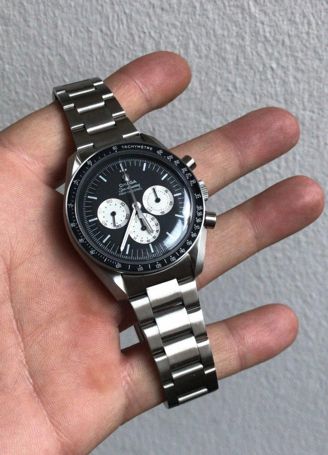 Staat hem goed!! Blijf me er over verbazen op de diversiteit aan banden waar de speedmaster echt goed staat!