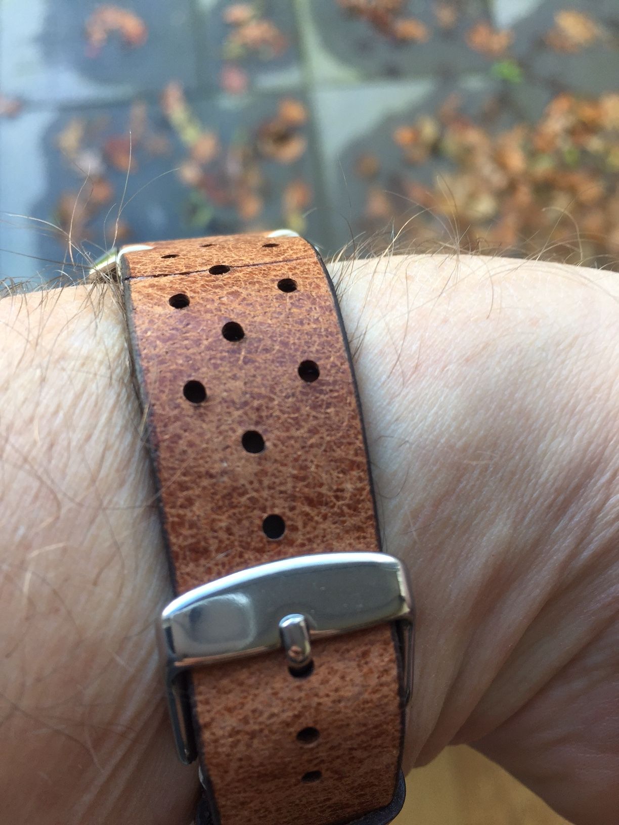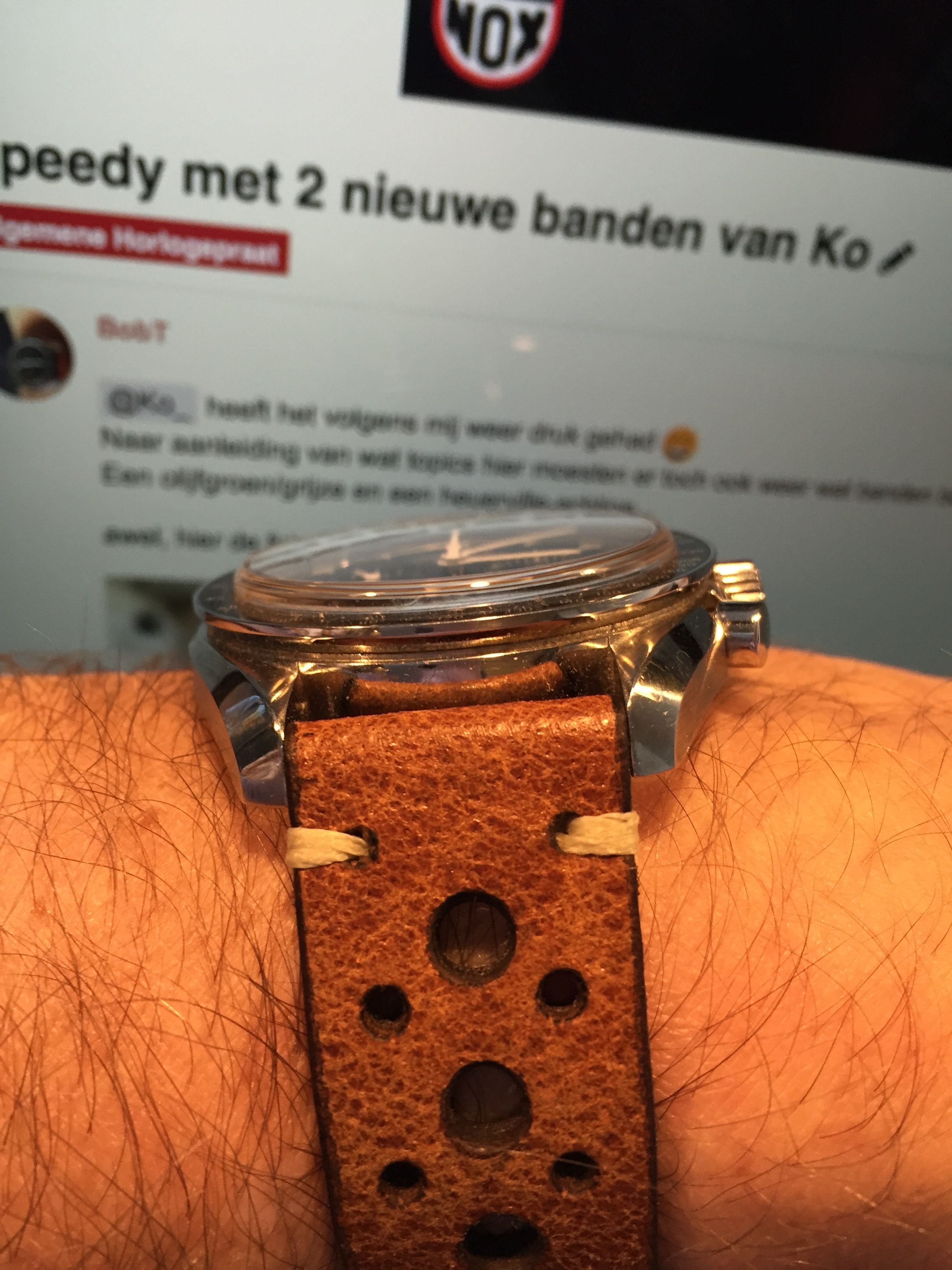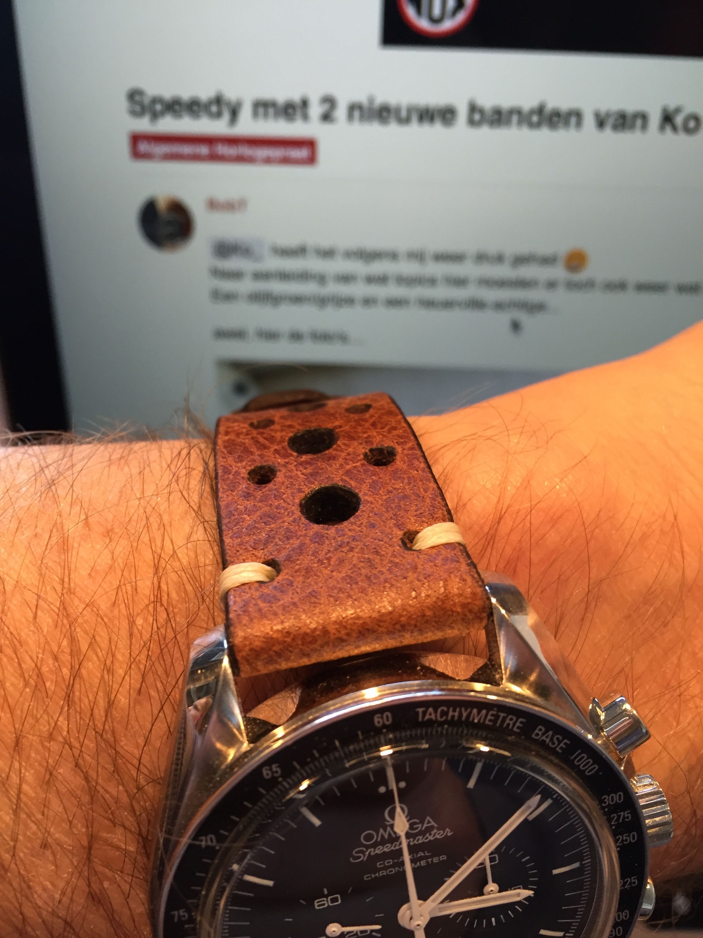 en de heuerville. Op advies van Ko niet op de Omega-vouwsluiting, maar gewoon met gespsluiting en niet van 21mm naar 20mm teruglopend (zoals alle andere banden die ik heb), maar naar 18mm.