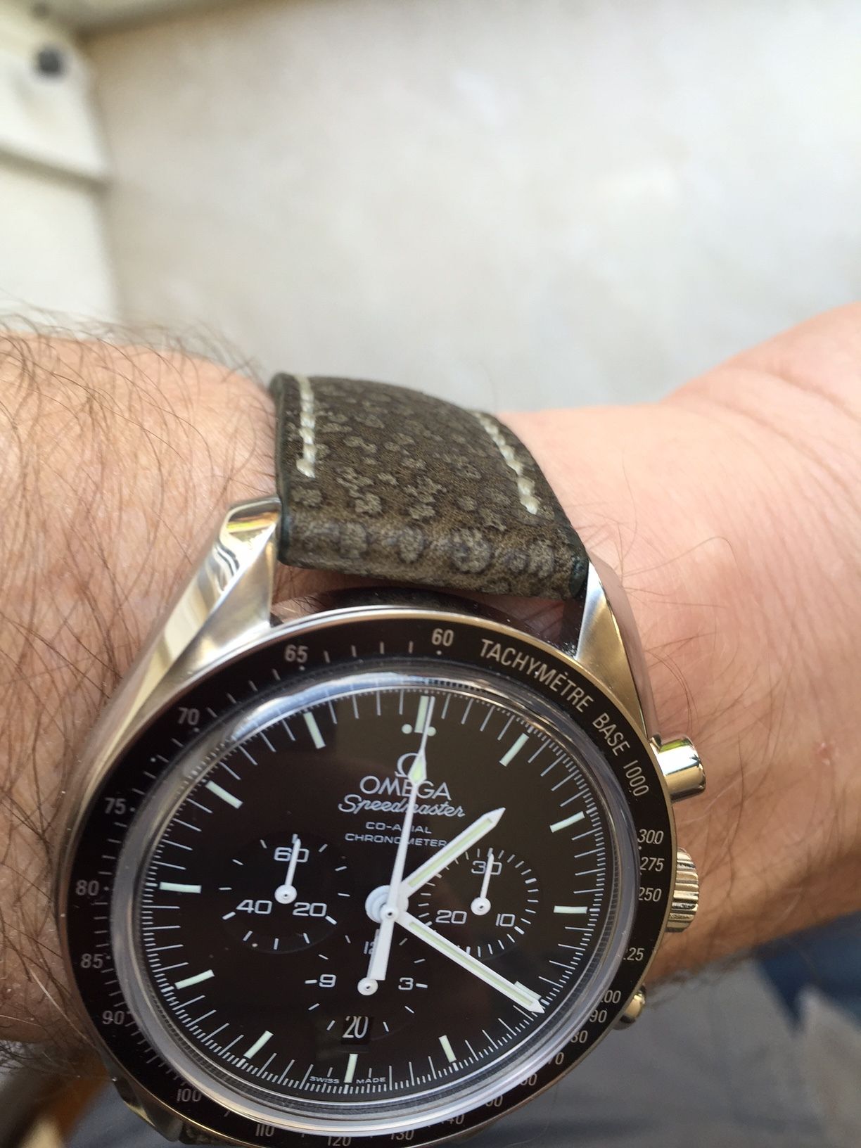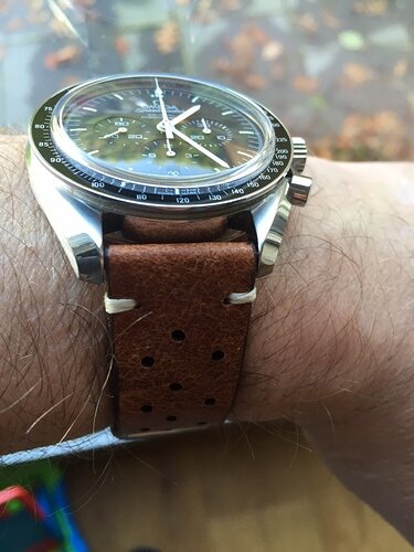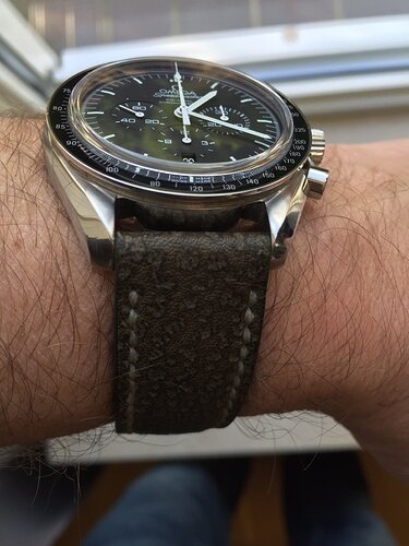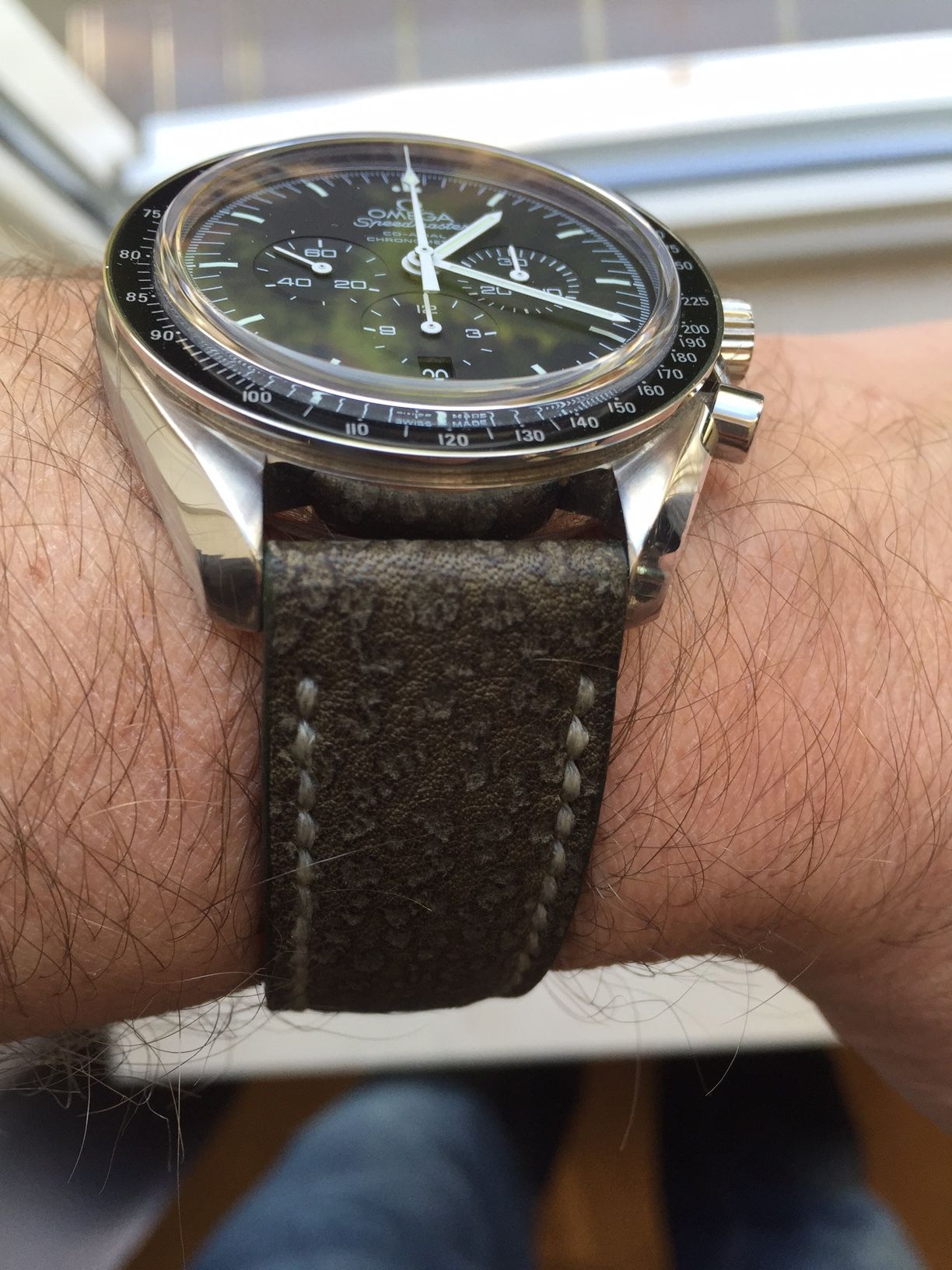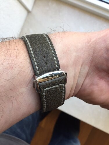 en de heuerville. Op advies van Ko niet op de Omega-vouwsluiting, maar gewoon met gespsluiting en niet van 21mm naar 20mm teruglopend (zoals alle andere banden die ik heb), maar naar 18mm.