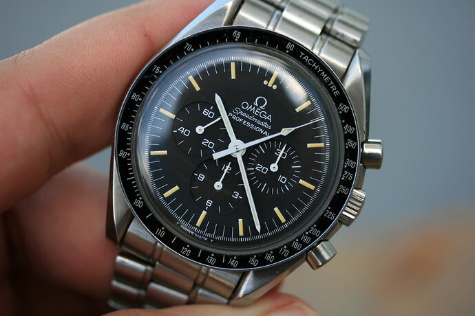 Overigens is er geen echt verschil in maat tussen de Speedmaster Pro en de FOIS. Omega meet de kroonbeschermers mee bij de diameter van de Pro, daar komt het verschil vandaan.