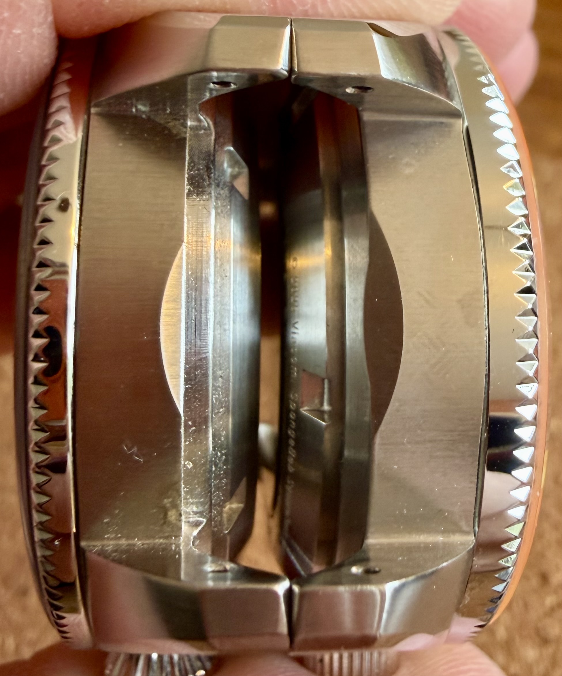 Nu is het zo dat ik de bracelet alleen op de Phantoms gemonteerd krijg en niet op de Spongebob. Vreemd, want in mijn ogen betreffen het twee dezelfde kasten? Toch kennelijk niet, want de Spongebob kast is net een fractie hoger. Tussen de lugs meet ik deze kast 0,5mm hoger dan de andere? Nu is het zo dat de ene wel een datumcomplicatie heeft, en de andere niet. Dus dat zo het verschil in hoogte van de kast kunnen verklaren??