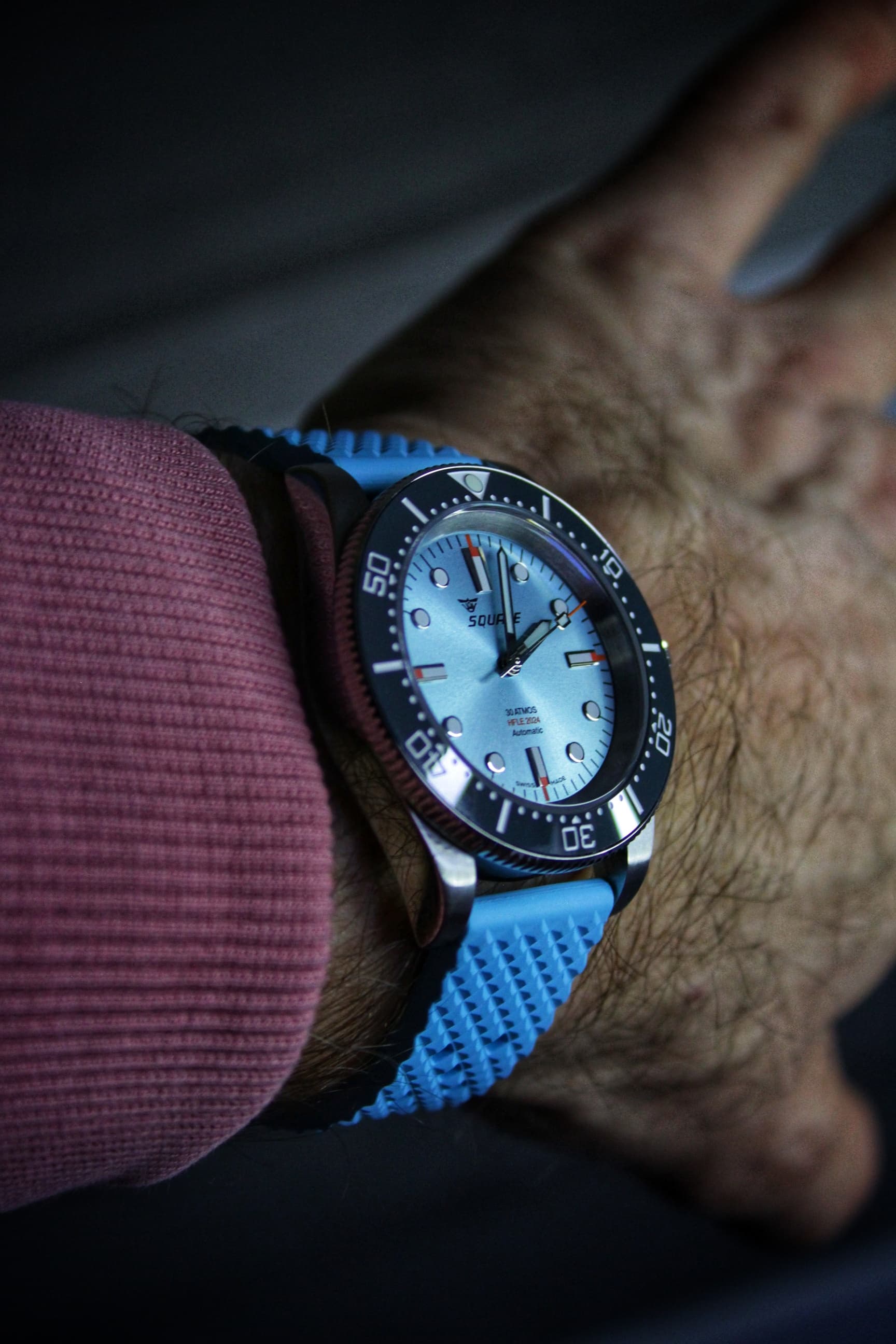 Die ice blue dial, maakt 'm ook wel een ideaal kersthorloge, natuurlijk!