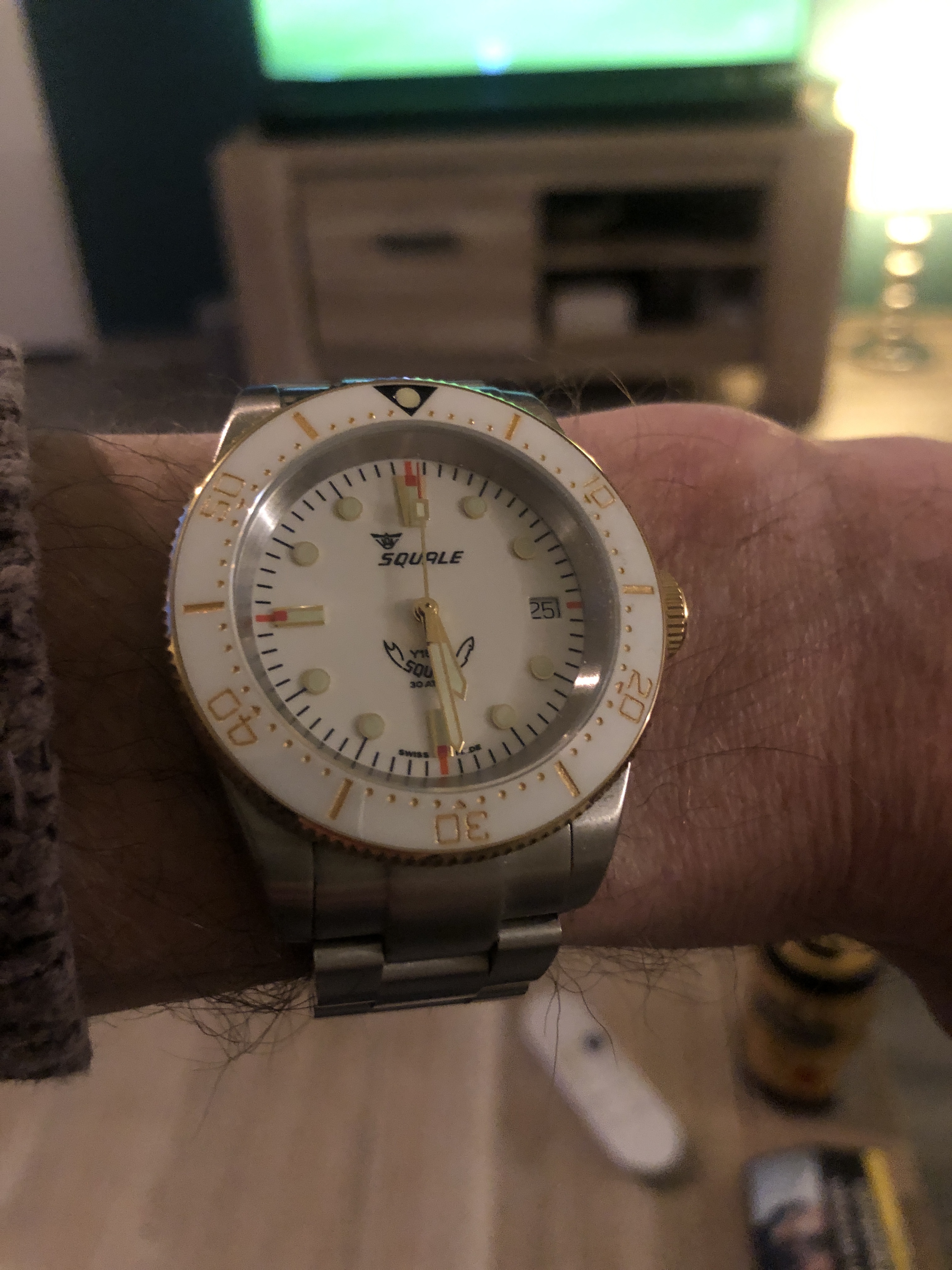 En de opgelegde indices met zo’n mooi randje en de bezel met lume cijfrts.