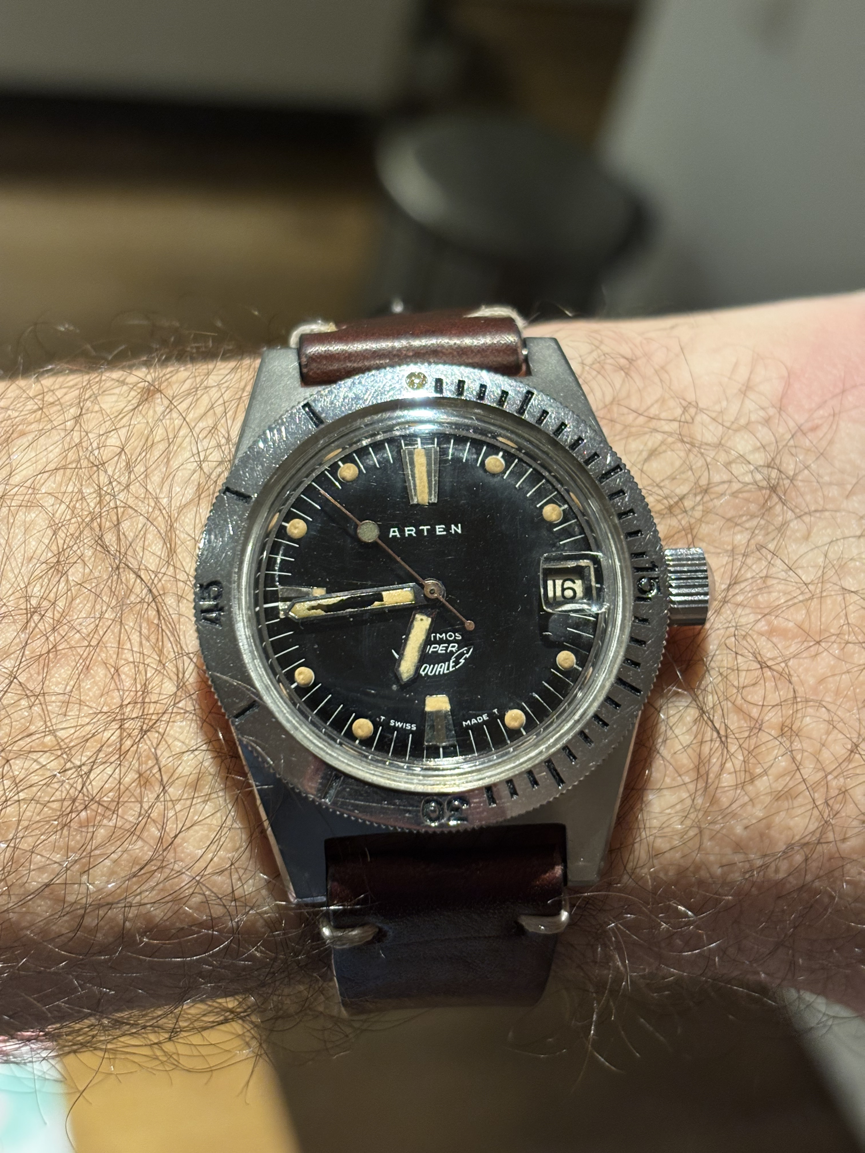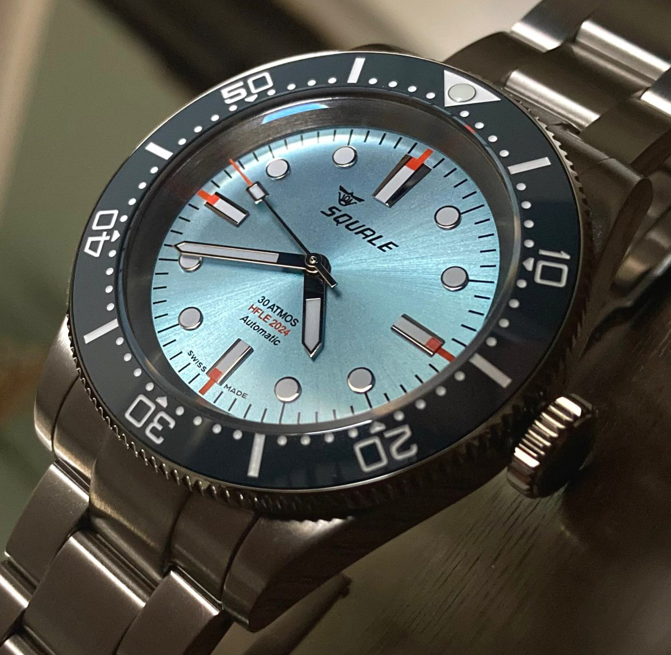 Ik heb de Sub 200t gehad, het is een compact horloge en denk dat hij inderdaad vergelijkbaar draagt met de super Squale. Misschien zelfs wat platter door het model van de kast.
