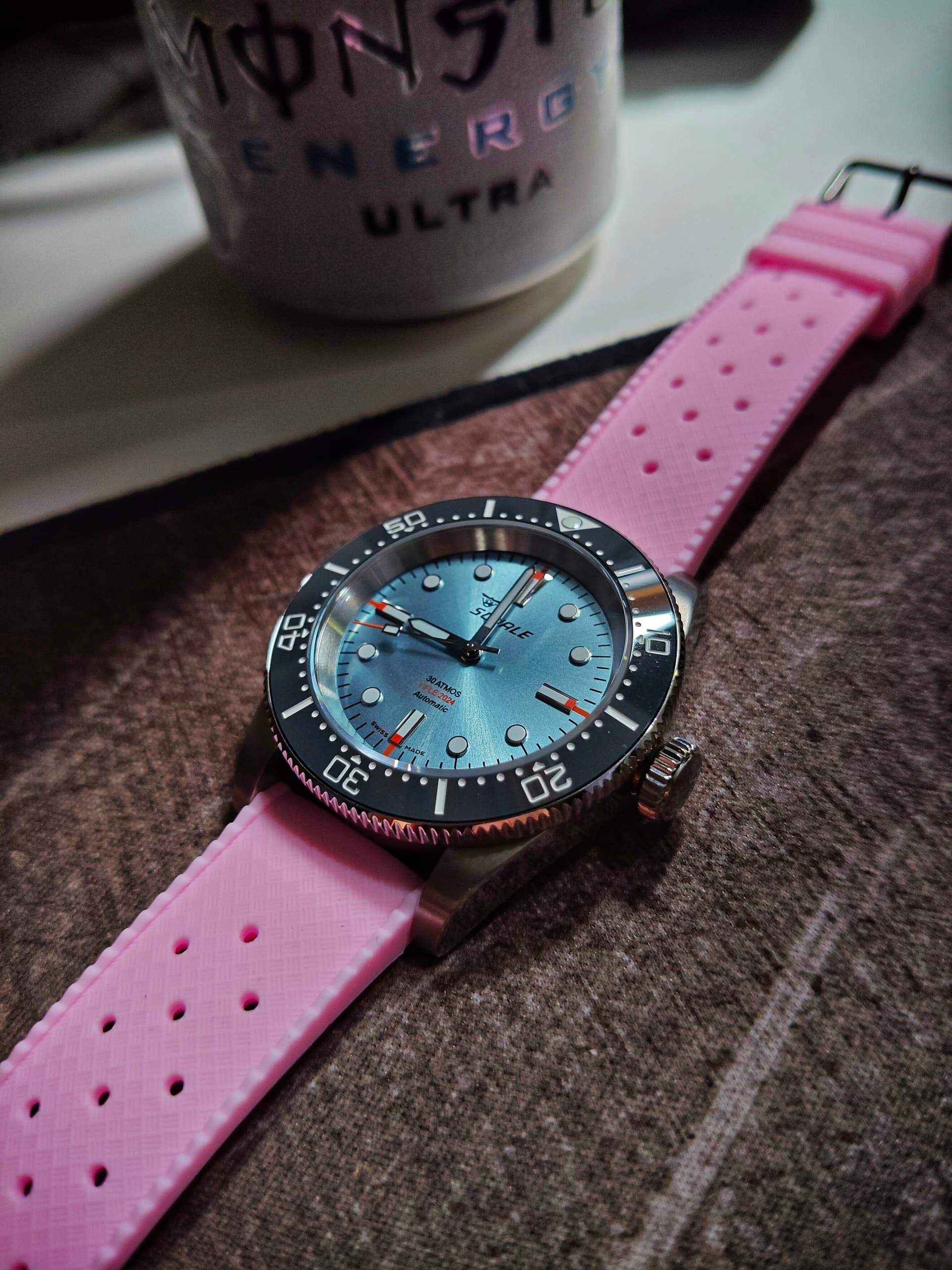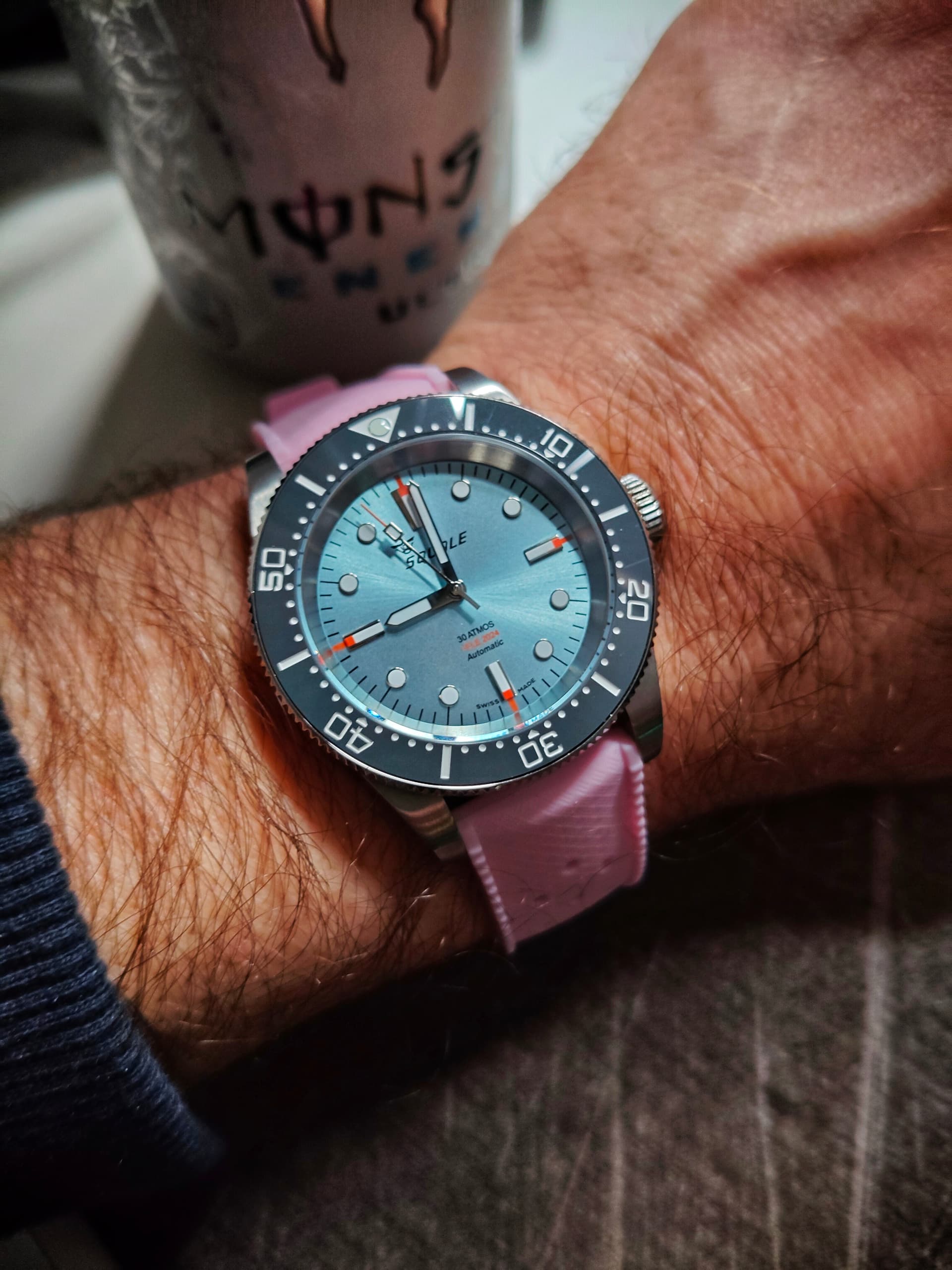 De diameter valt trouwens wel reuze mee. Je zou never nooit niet zeggen dat deze 44.3mm is.