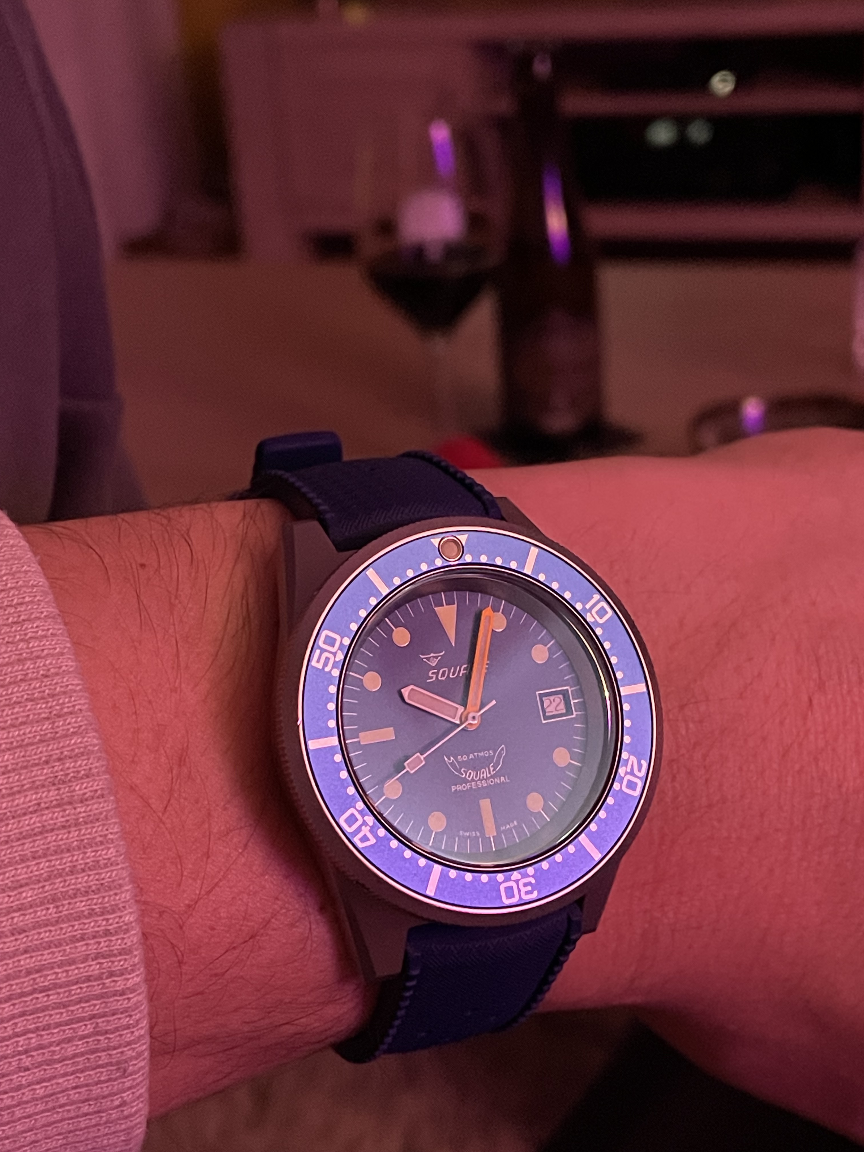 ik meld me hier met een NA nieuw in de kroeg trouwens! Begin dit jaar enkele horloges van @Petteflet mogen vasthouden, geënthusiasmeerd voor dit mooie Italiaanse vakmanschap, en vanavond de trekker overgehaald voor bovenstaande full lume knaller hier in het blauw op HF!