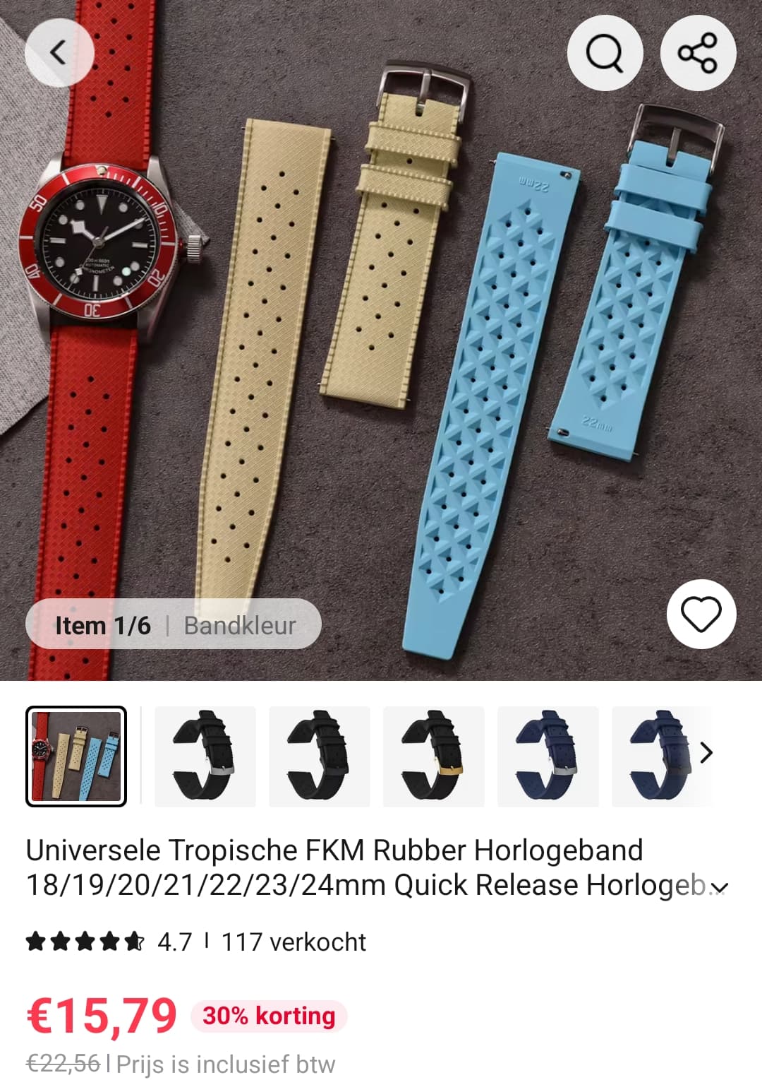 De Ali van het plaatje zijn het toch net niet wat betreft taper en dat zou ik zeker bij 22mm Lugs belangrijk vinden, en de Ali is lang en de kleur is wat fletser. Verder niks mis mee hoor, ik ben nu gewoon fe kritisch.