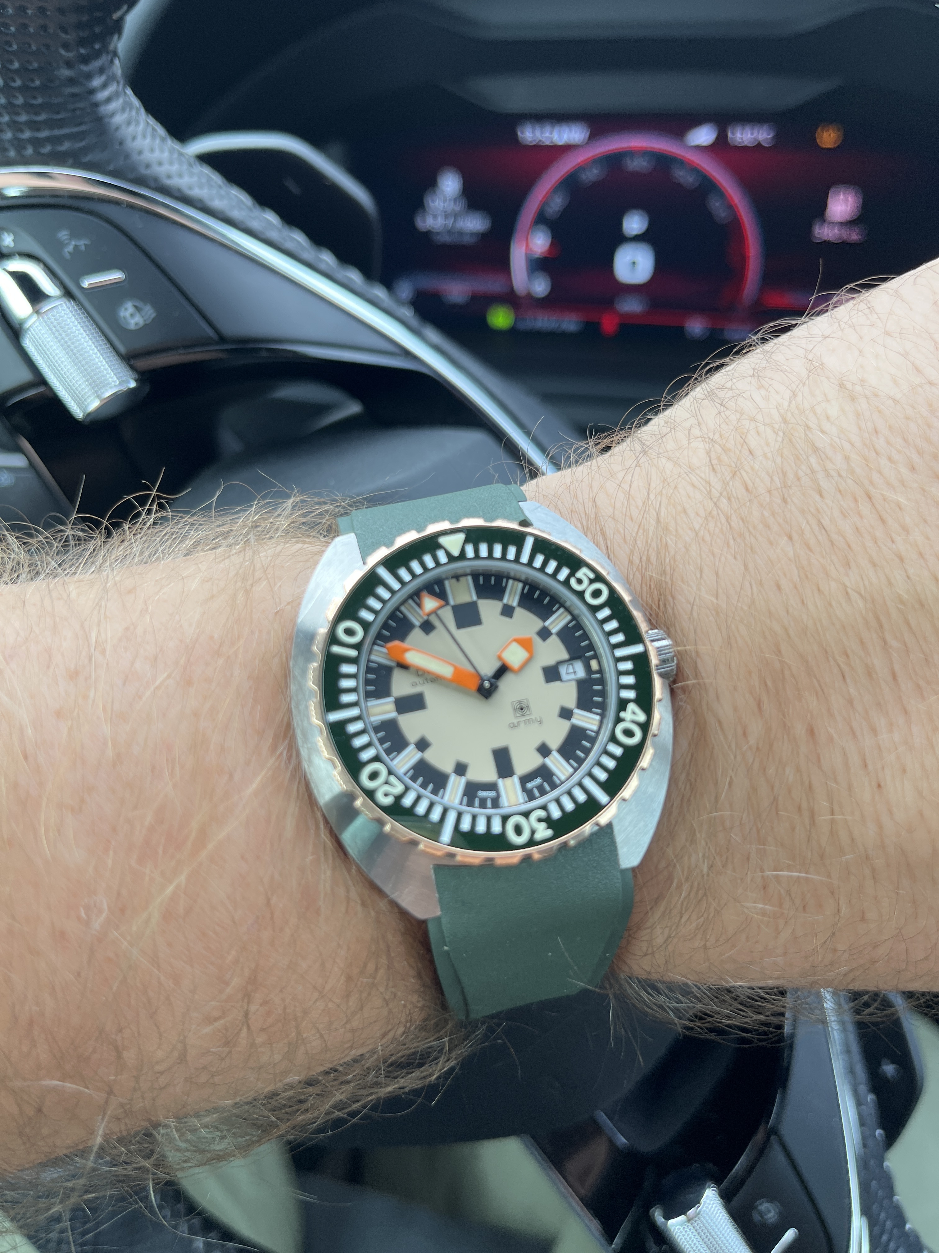 Hier ook. Zo erg zelfs dat de MM helemaal fris blijft … jouw nieuwe rubberen band is trouwens wel een hele verbetering Hein! Hij past nou prima volgens mij, zit niet meer zo strak. Ziet er top uit. Ben erg benieuwd tijdens de GTG, naar deze ‘Army’.