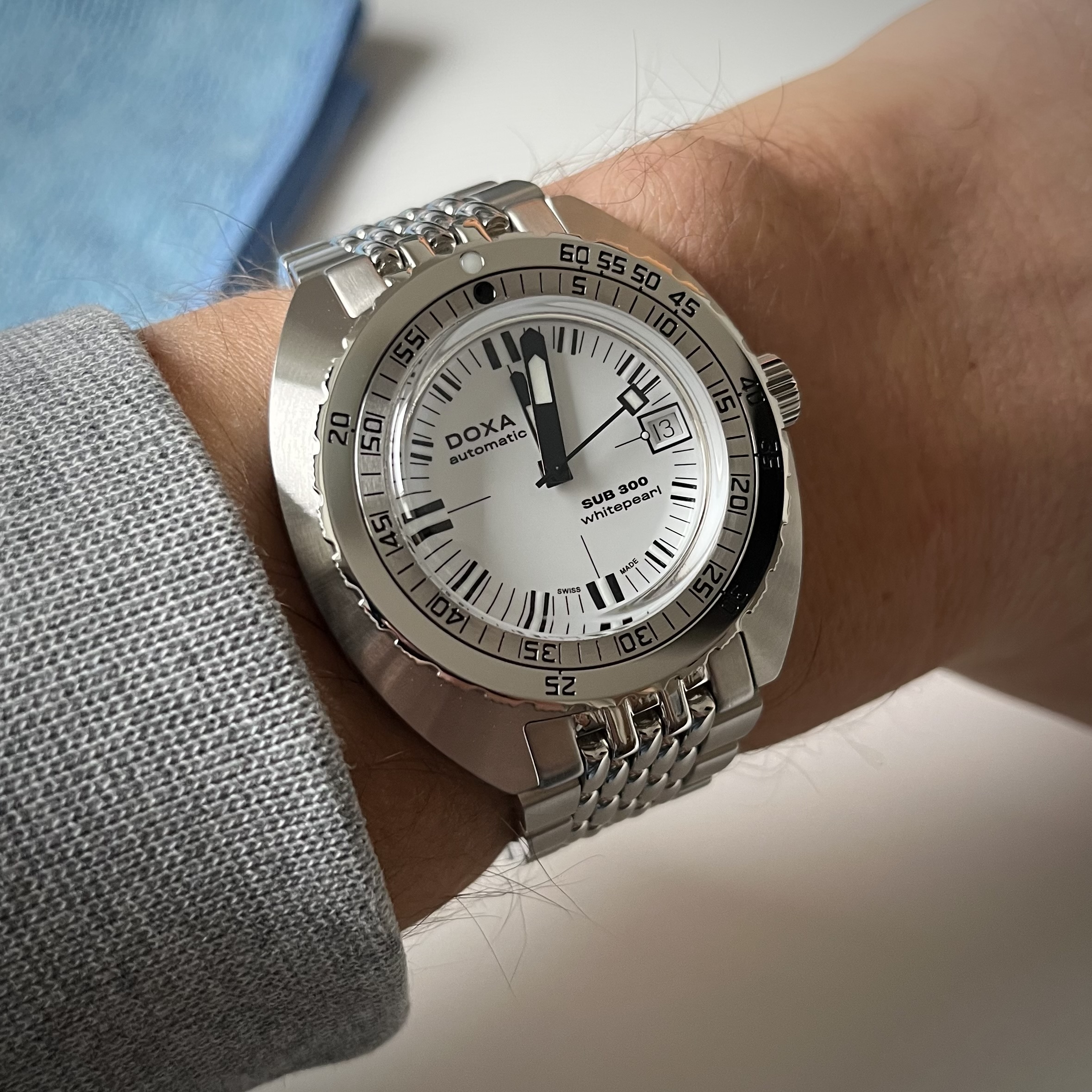 en de 300 draagt en oogt vrij elegant (voor zover dat kan met een 42,5mm duiker)