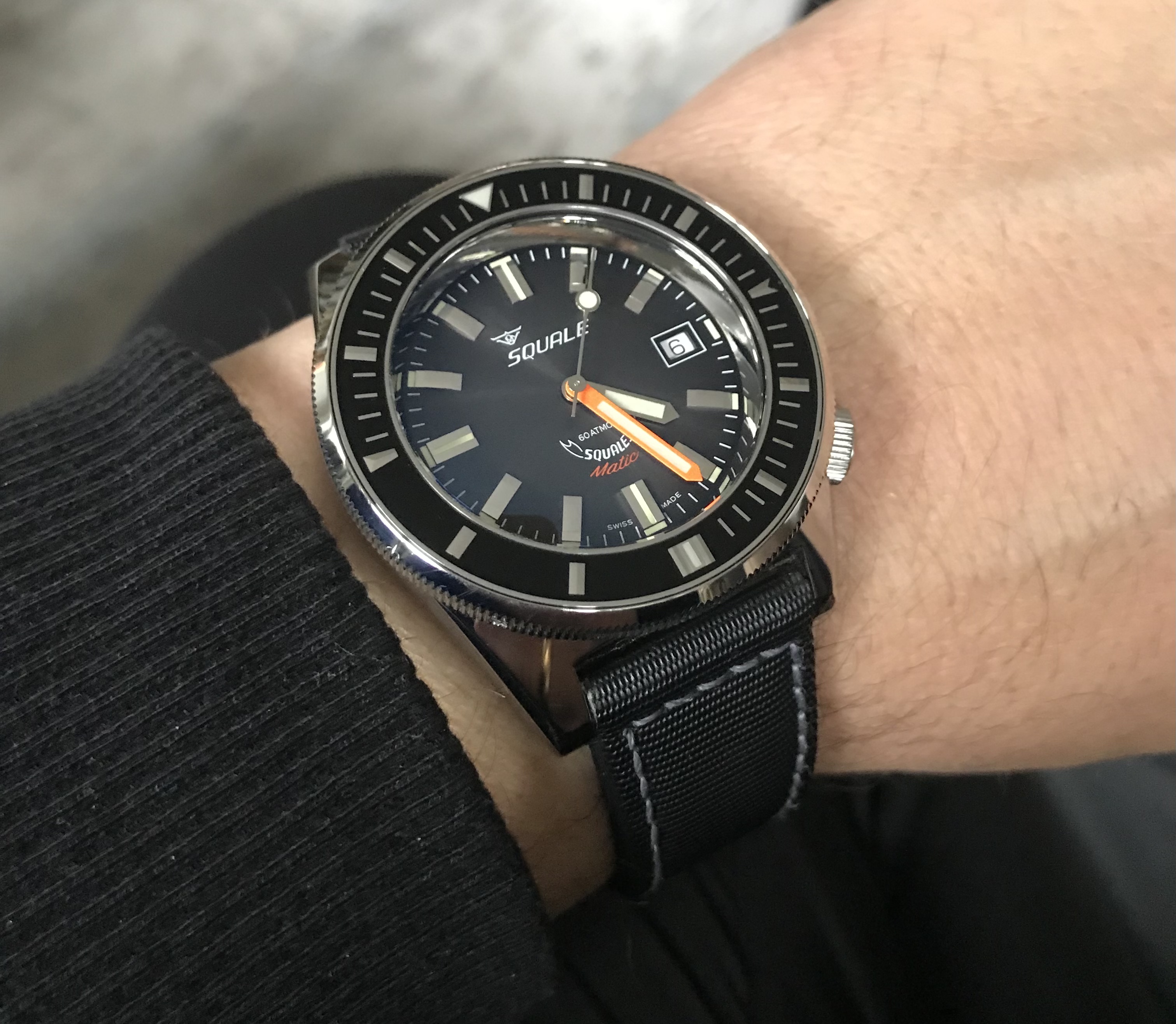 Niet zonder datum, het Squale logo is dan ook weer ‘normaal’ én er zit een andere band bij. Dan kom je bij deze Squale Matic uit …