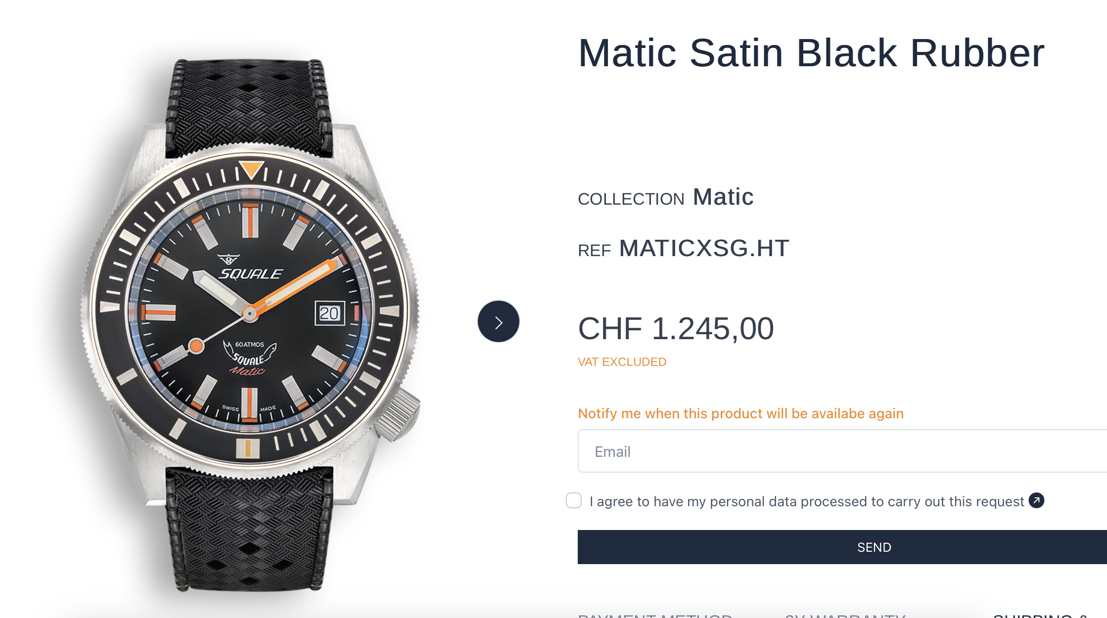 Niet zonder datum, het Squale logo is dan ook weer ‘normaal’ én er zit een andere band bij. Dan kom je bij deze Squale Matic uit …