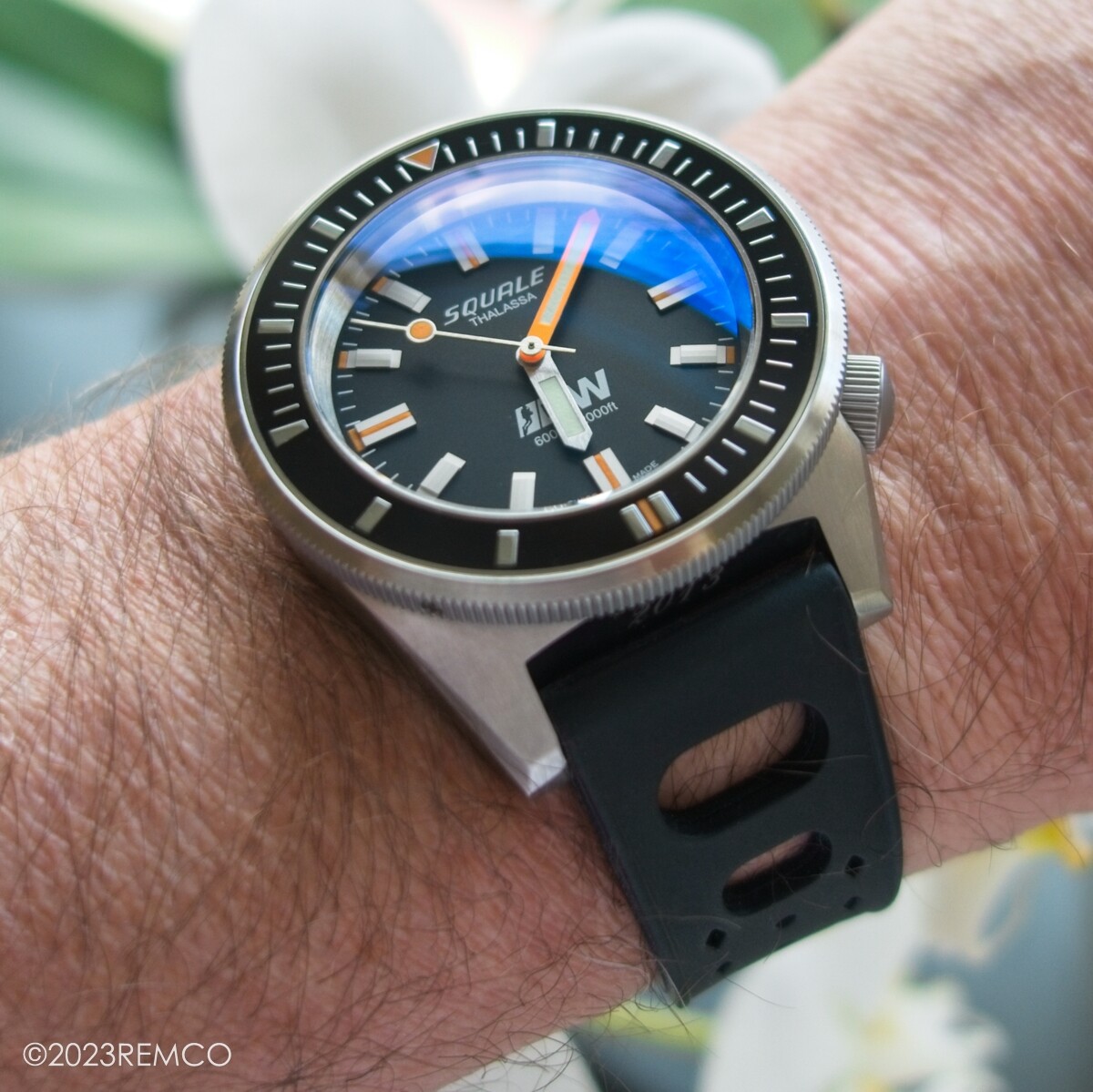 Ik ben van de 1521 overgestapt naar een Squale Matic (de Thalassa is een Matic) en hoewel de laatste op papier een stuk groter oogt, merk je er aan de pols weinig van. Vind ik. Komt voornamelijk door de sublieme kastvorm, die draagt gewoon heel fijn. Héél erg fijn! Maar dat weet je al, want je hebt de 1521 …