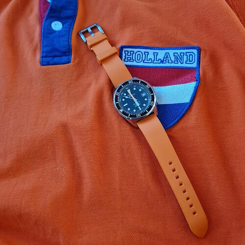 Iemand nog interesse in overname van een 20mm Oranje Zuludiver 300 MKII voor een pols kleiner dan 17,5 cm? Gaat weg wegens aanschaf zelfde band, maar dan qua lengte een fractie groter. Graag pb, zo niet dan gaat hij binnenkort in het blauw.