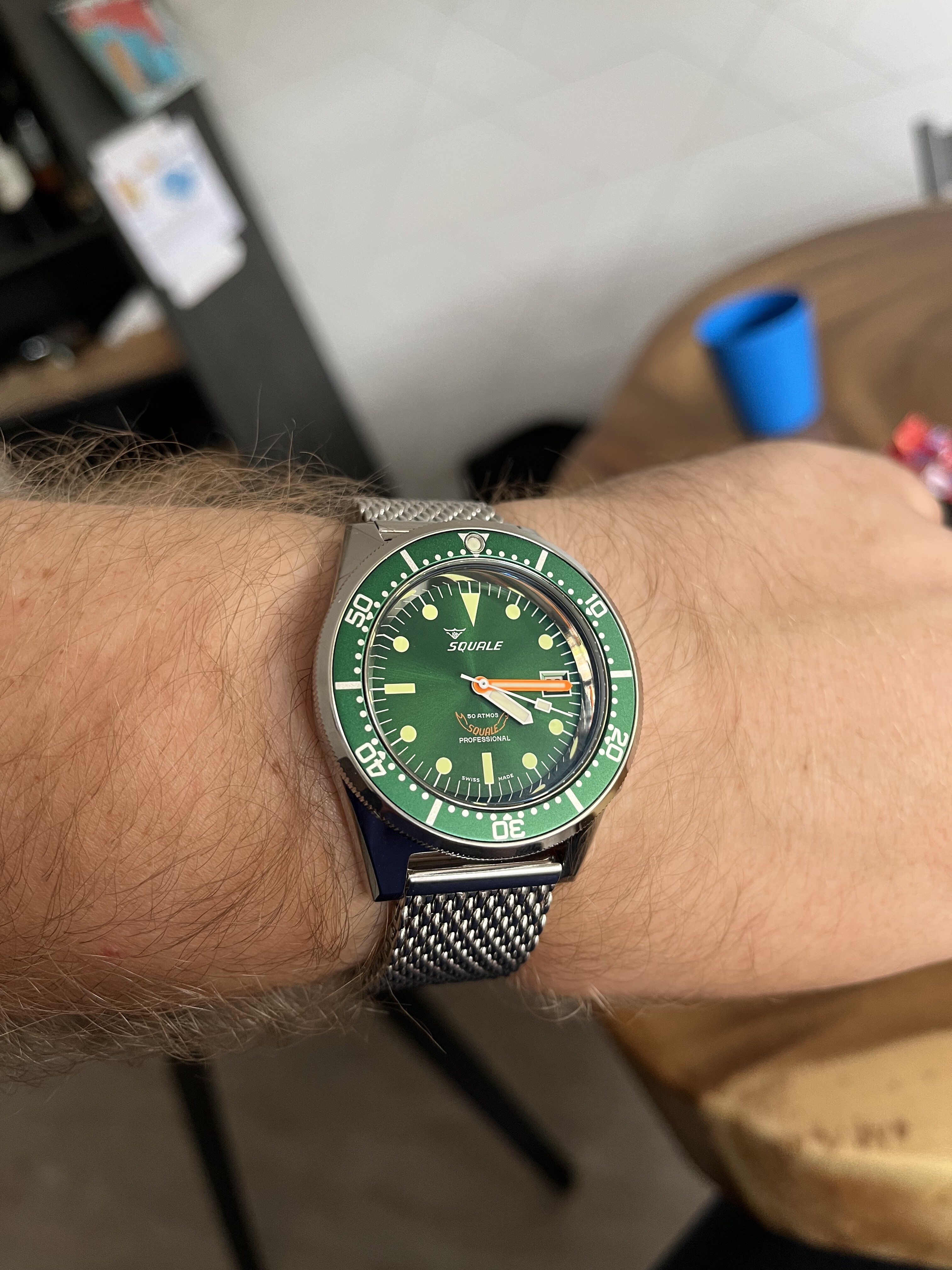 De OEM blasted mesh band bevalt prima. Ik moest toch naar Wesselink & Vreeker voor een beurt van de Planet Ocean en ze waren zo goed om de band er even op te zetten. Scheelt weer krassen door mijn onhandigheid.