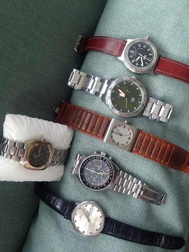 Tsjonge, die twee zijn nog steeds fantastisch, euhh moet ik die ene niet een servicebeurt geven, , Pfff wat is dat een goor ding, oh oog wat zou een Nomos Orion de boel opleuken, en waar is toch die vierkante die ik vorig jaar nog zag, zijn dit ze werkelijk allemaal??, nu nog effe de lotto en dan……