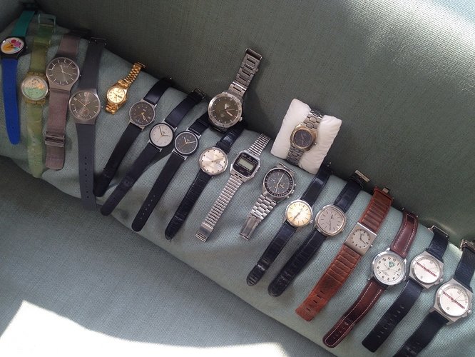 Maar ik was aan het opruimen en mijn horloges bewaar ik niet in een beautycase of lade. Dus slingert alles overal rond.