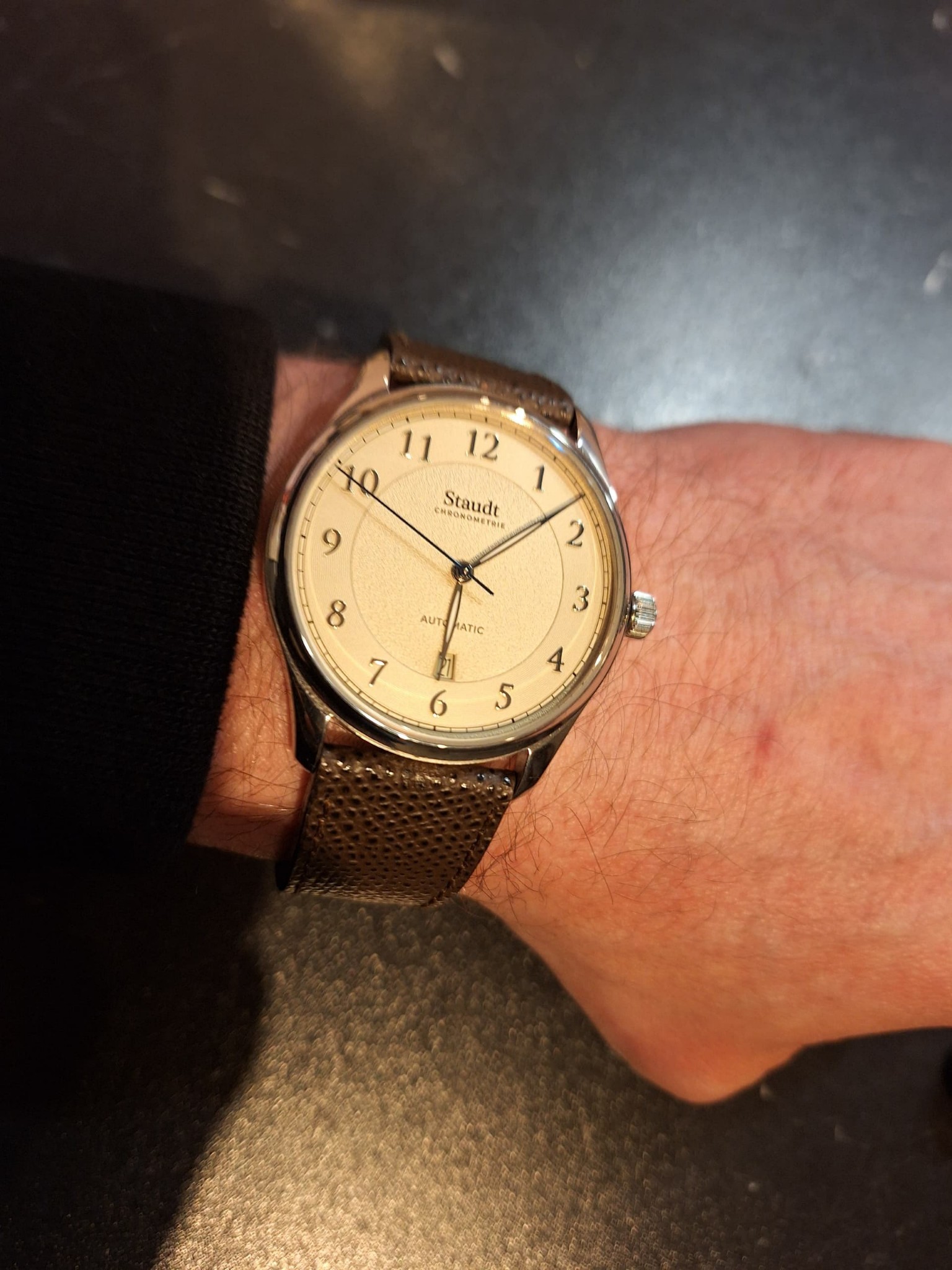 Toch leuk dat in ieder geval één bekende Nederlander én ook nog eens een respectable man, een Staudt-horloge draagt. Volgens mij een gouden Guilloché? We zijn in goed gezelschap in ieder geval. Weet iemand of Staudt iets met bekende Nederlanders doet verder?
