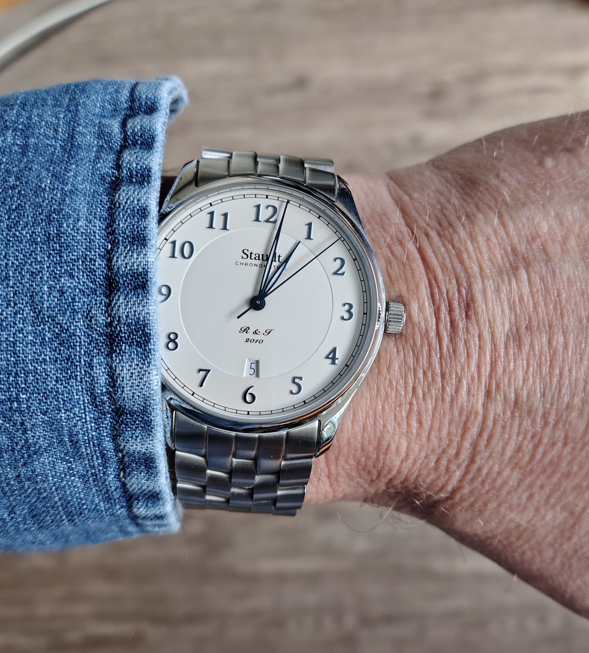 Nogmaals gefeliciteerd Paul, prachtig horloge! Erg mooi die witte plaat met de blauwe indices!