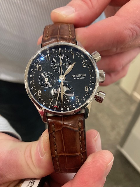 Maar ik heb recent een Steiner Limited Edition,uitvoering staal 39 cm, kunnen kopen met zwarte wijzerplaat. Het horloge is ongeveer 20 jaar oud maar ziet er nog heel netjes uit.