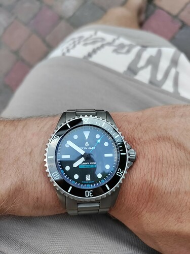 Ik had voor m’n vrouw een wit rubberen steinhart bandje besteld voor haar Ocean 39 PINK Ceramic duiker, en vandaag hoorde ik van een medewerker van Steinhart, dat er binnenkort een “royal blue” versie van