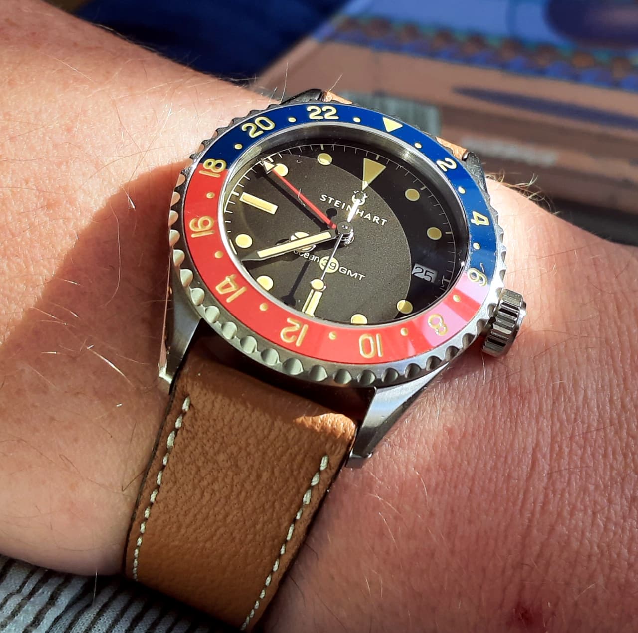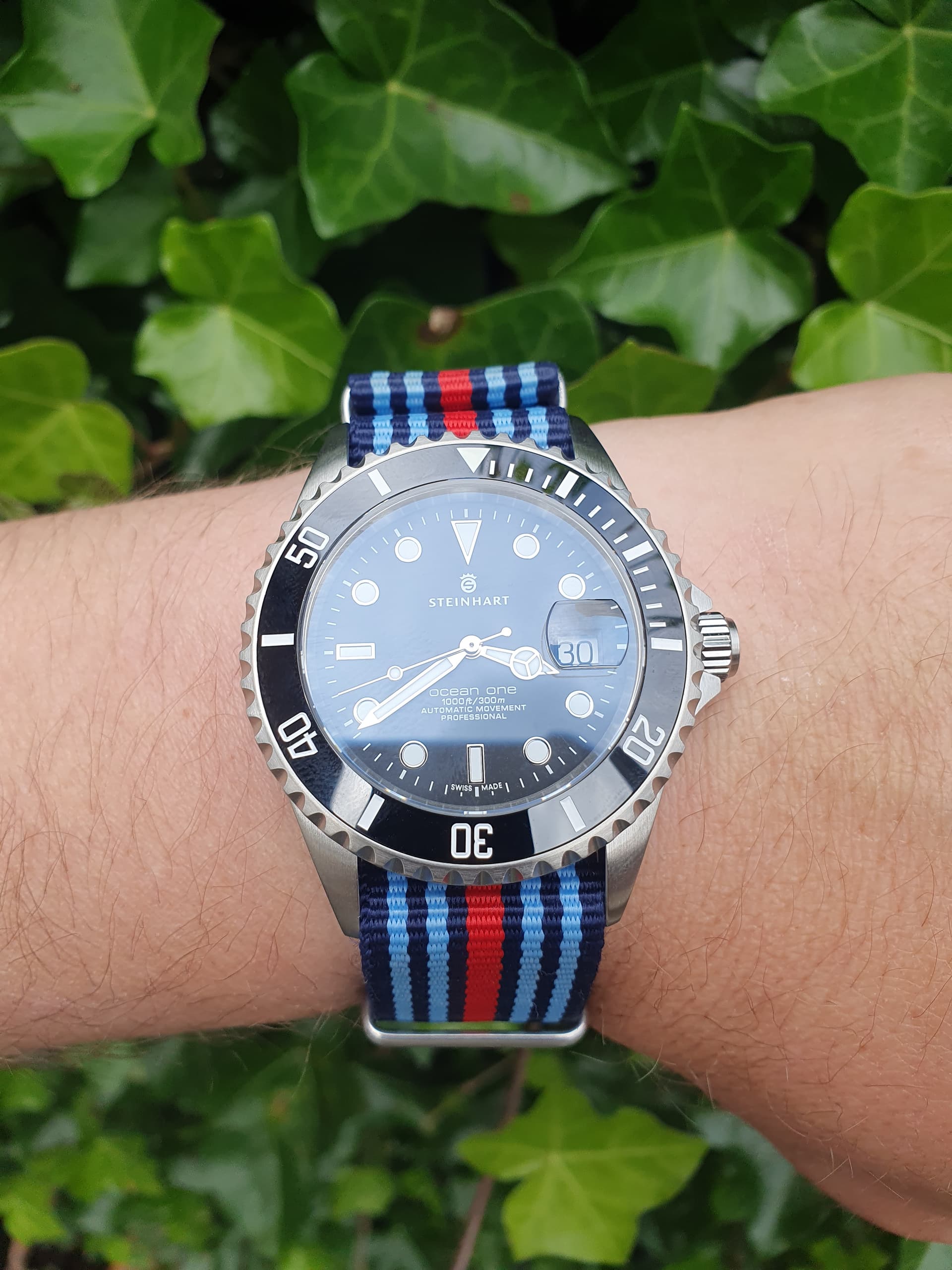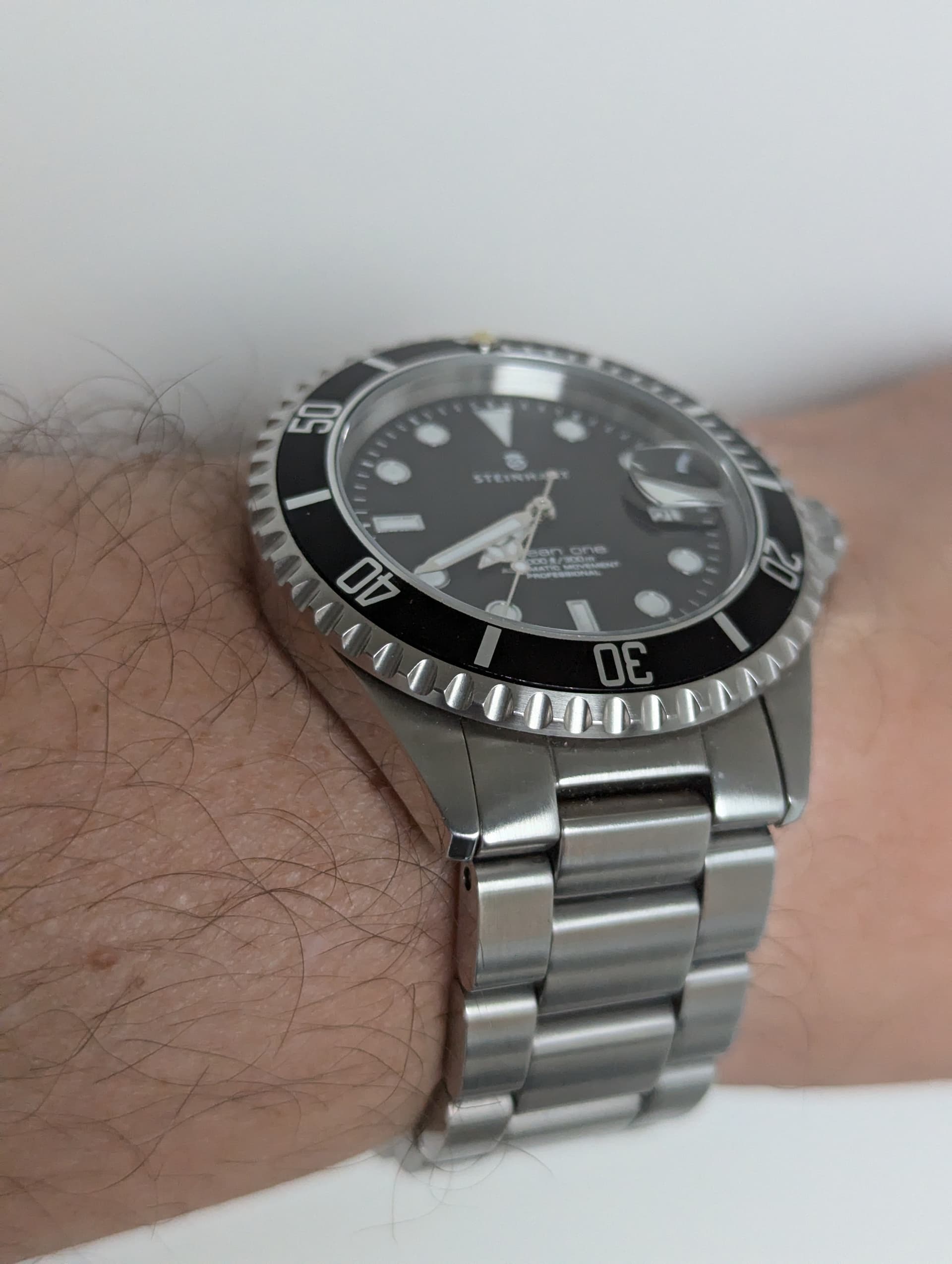 Ik ben niet zo’n fan van de sluiting die Steinhart op de metalen banden gebruikt, maar er zijn prima alternatieven, zoals een swick MN strap, of op een nette leren band: