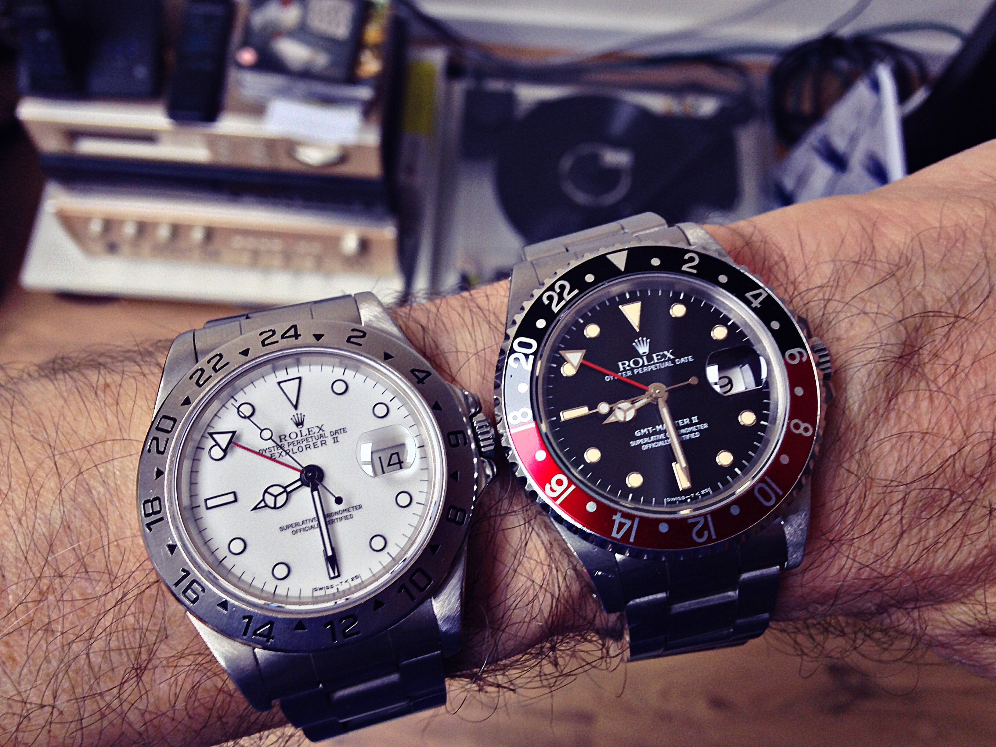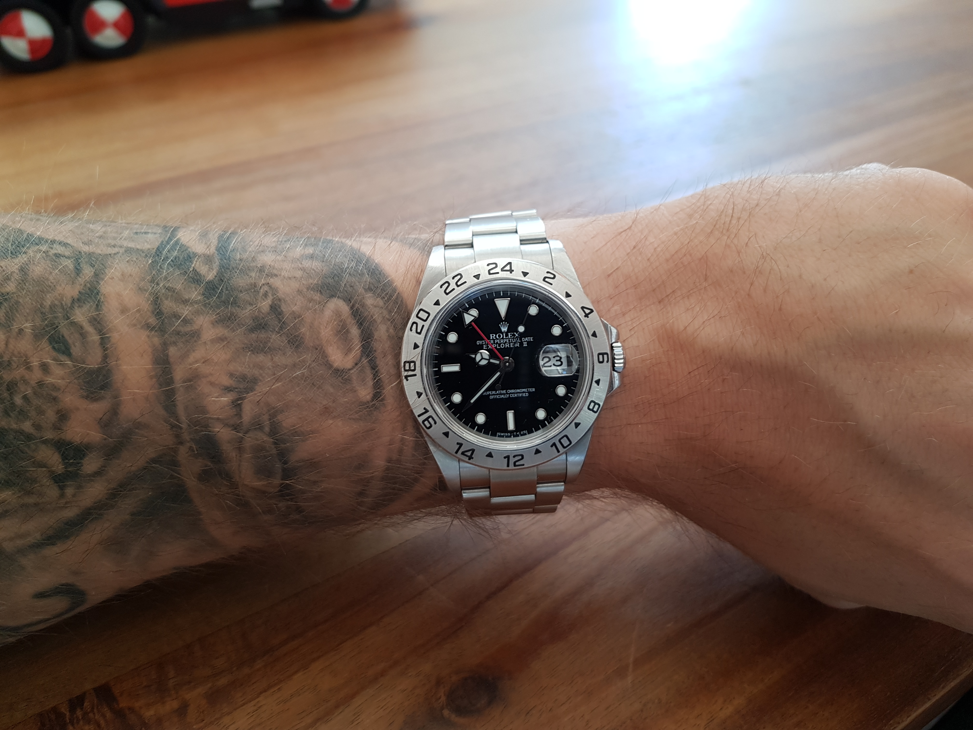 Die Explorer is jarenlang mijn daily beater geweest. Geweldig horloge, momenteel beetje op rust. Verwacht met die Explorer om de pols geen massaal applaus als je een kamer vol mensen binnen loopt. Een Explorer is bij het grote publiek niet echt herkenbaar als zijnde een Rolex. Kan je daar mee leven. Koop de Explorer. Je kunt hem ook eens tegen een muur gooien, terug om de pols en buiten een paar krassen niks aan de hand. Ga d’r mee zwemmen, bergbeklimmen, whatever… Is voor mij de definitie van een stoere allrounder.