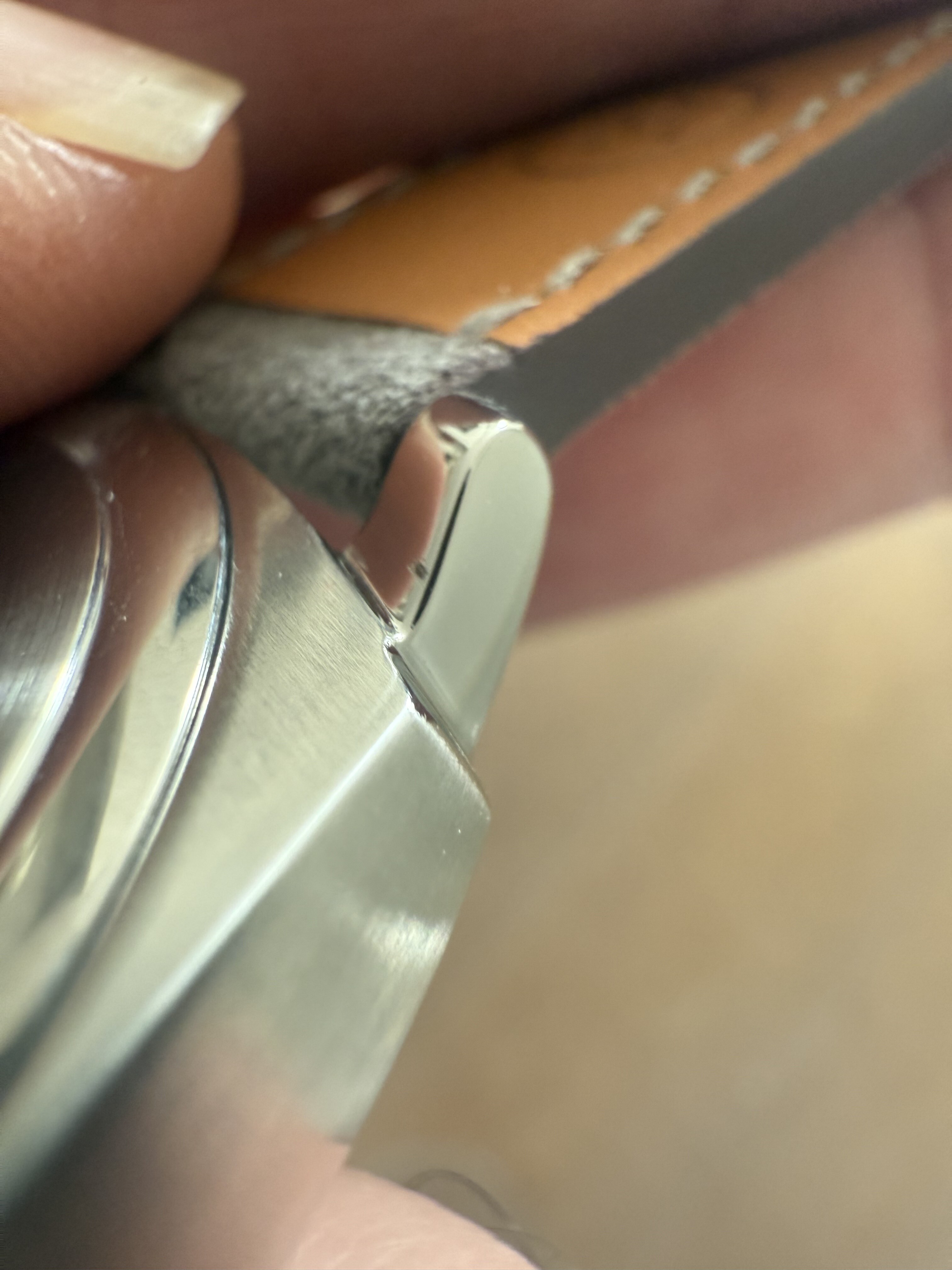 Band: Zoals 95% van de leren banden vind ik die k*t. Te dik, te stug. Snel een Molequin opzetten.
