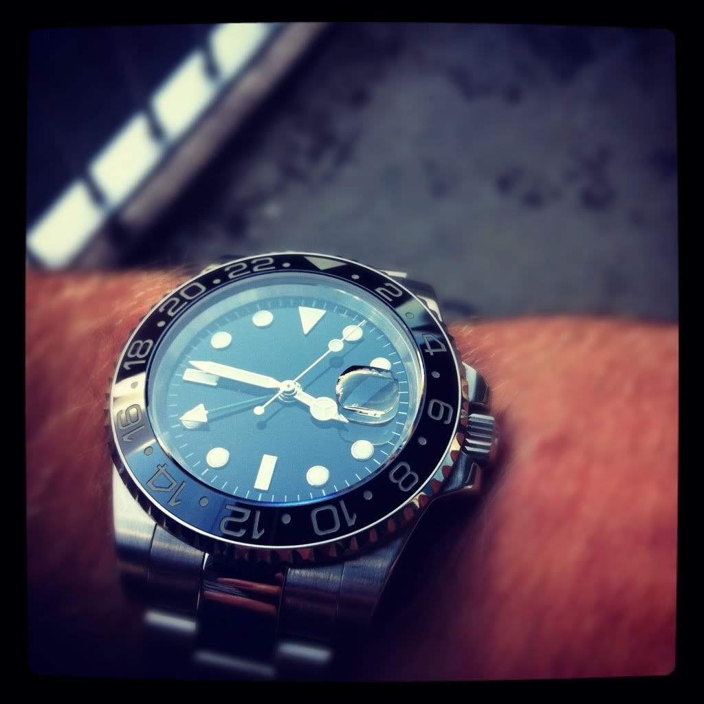 Ik wil de nieuwe Rolex GMT hebben en wou vast even kijken of het wat voor me was. Deze heeft eveneens saffierglas, ceramische bezel en een automatisch uurwerk en kost incl. invoer zo’n €100,-