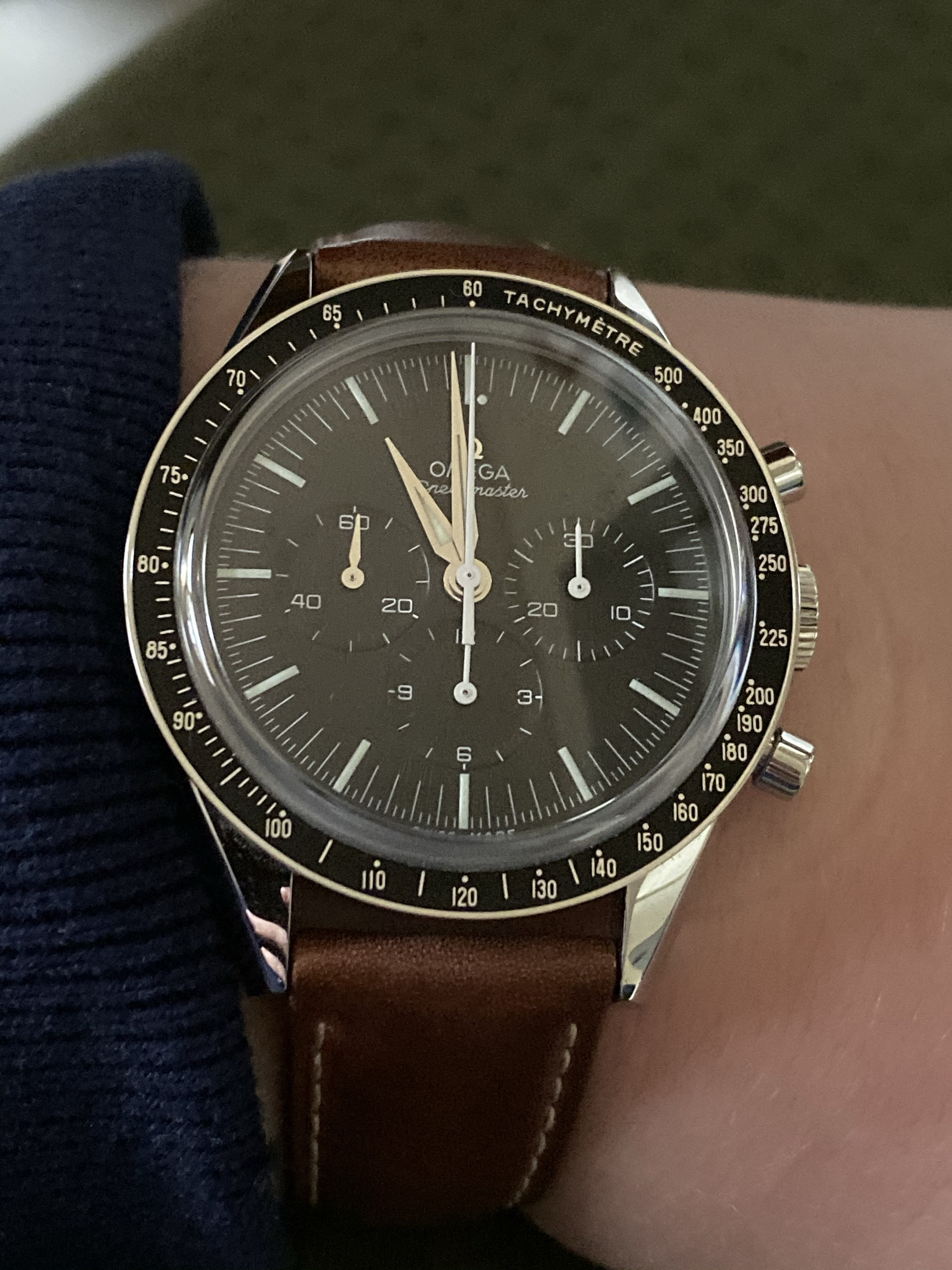 Ik ben zelf mede door de speedmaster en de IWC Portugieser 7 days geïnteresseerd geraakt in horloges. En toen een Parnis gekocht die leek op de IWC. Maar nog nooit een speedie gehad. Wel vaak in de handen gehad, maar voor mij werkt het niet.