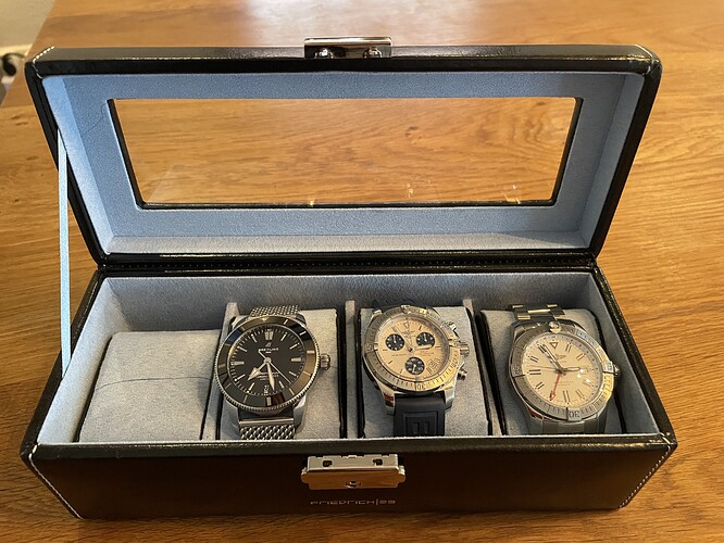Friedrich I 23 is het type doosje, was 39€ als ik me niet vergis. Wel blij nu iets te hebben want de horloges zweefden op de slaapkamer tussen nachttafel, dressboy en tv meubel😅.