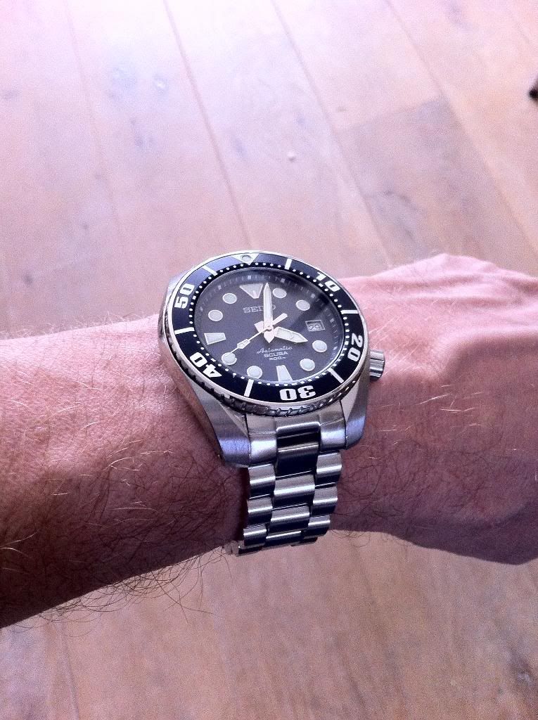 Toch de originele sluiting van de Sumo maar overgezet. Ik had het eerst met een andere Seiko-sluiting geprobeerd, lukte niet, maar met wat gewroet deed de originele sluiting het wel.