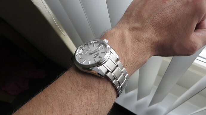 Hij vind het een prachtig horloge met een waardeloze band. Wat zou suggereren dat hij hem gepast heeft. En ja, 6K is veel voor een belastingvrije Seiko. Het is weer niet veel als je 20K te besteden hebt.