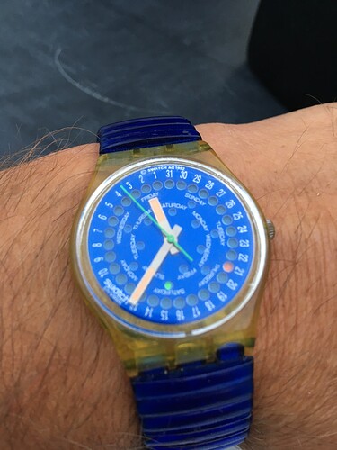 Mooi maatje! Dit is toch de ltd van ûh… jézusje, ik begin oud te worden! pfff, van ik weet het niet meer. Een of ander commercieel influencer #blogding? Wel een leuke uitstraling! Typisch Swatch. Simpel, kleurrijke details, doeltreffend en het loopt als een tierlier vermoed ik zo maar.