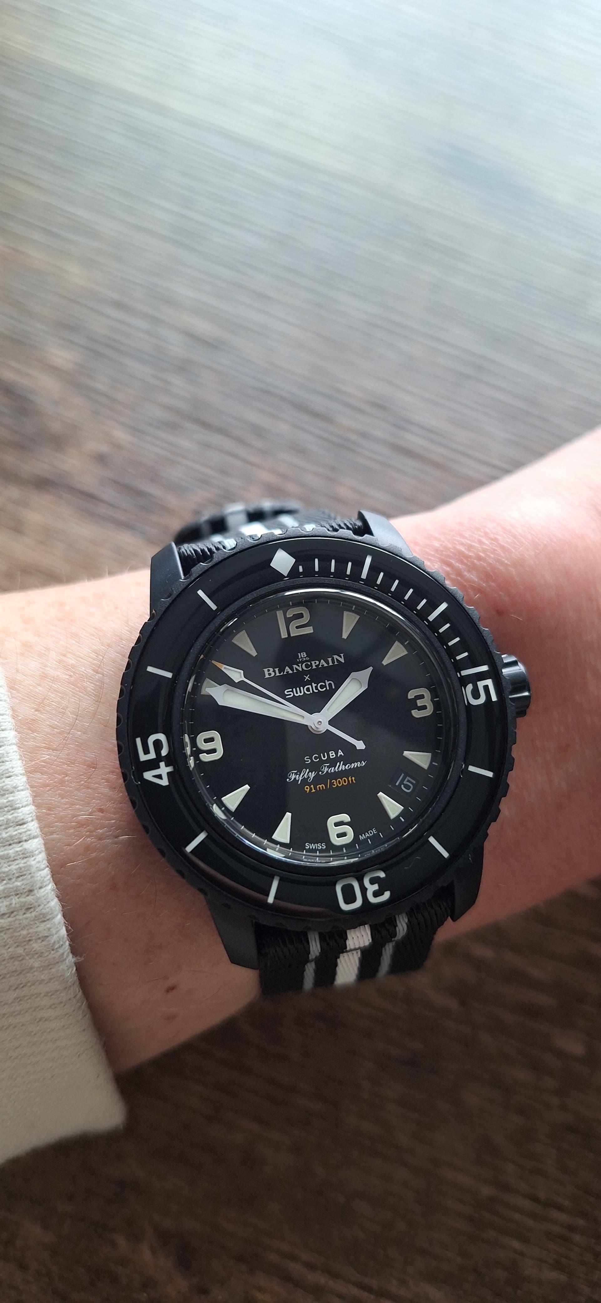 Sinds gisteren een swatch er bij. Ander half jaar geleden een swatch x omega polar light gekocht en nu een swatch x blancpain ocean of storms.