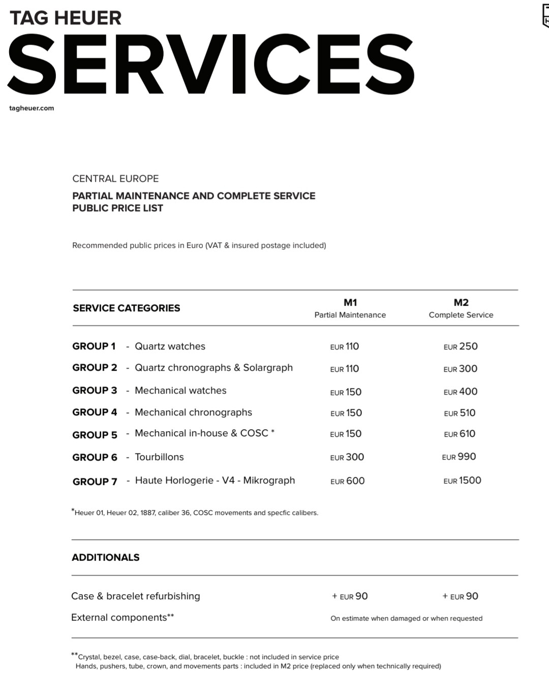 Bij mijn heuer01 uurwerk kost wel tussen de 600 en 700(omdat het een COSC uur werk is) volgens S&C