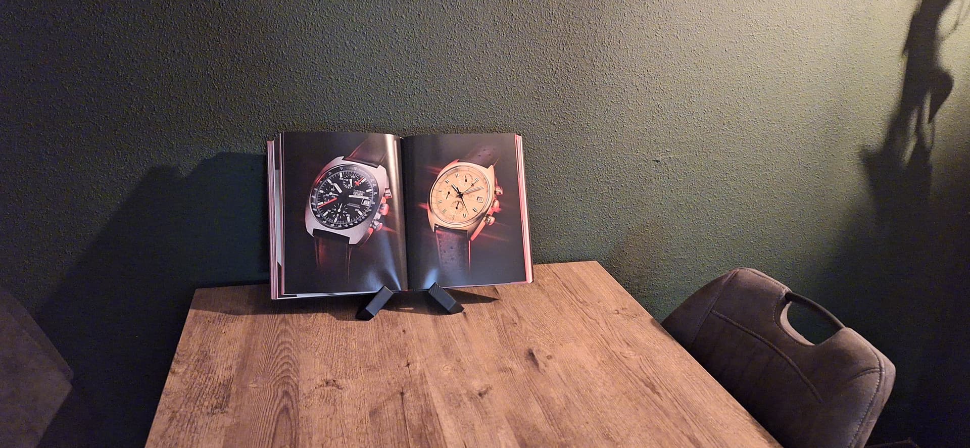 Mooie verzameling. Het boek van tag heuer heeft eene prominent plekje in huis. En de andere boeken(vooral motor sport gerelateerd) liggen in de kast. past niet bij de kleuren van het huis zegt de vrouw (iets met kleuren van Valentino Rossi)