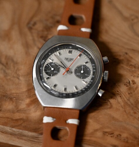 Toch maar de Carrera om, op een nieuw bandje. Droeg 'm altijd op staal. Maar, zo op leer, komen die geweldige en unieke Carrera lugs en kastvorm nog beter tot hun recht, vind ik.