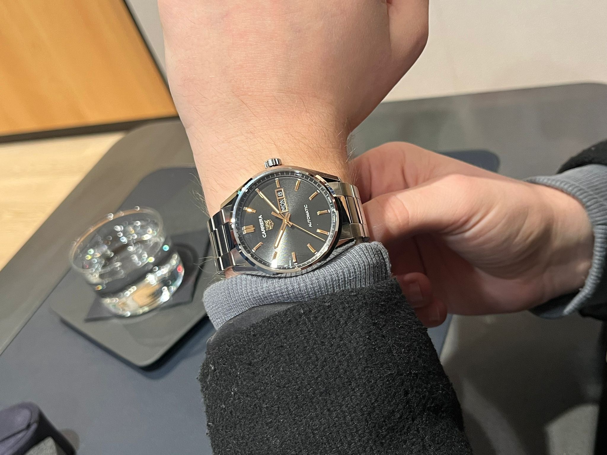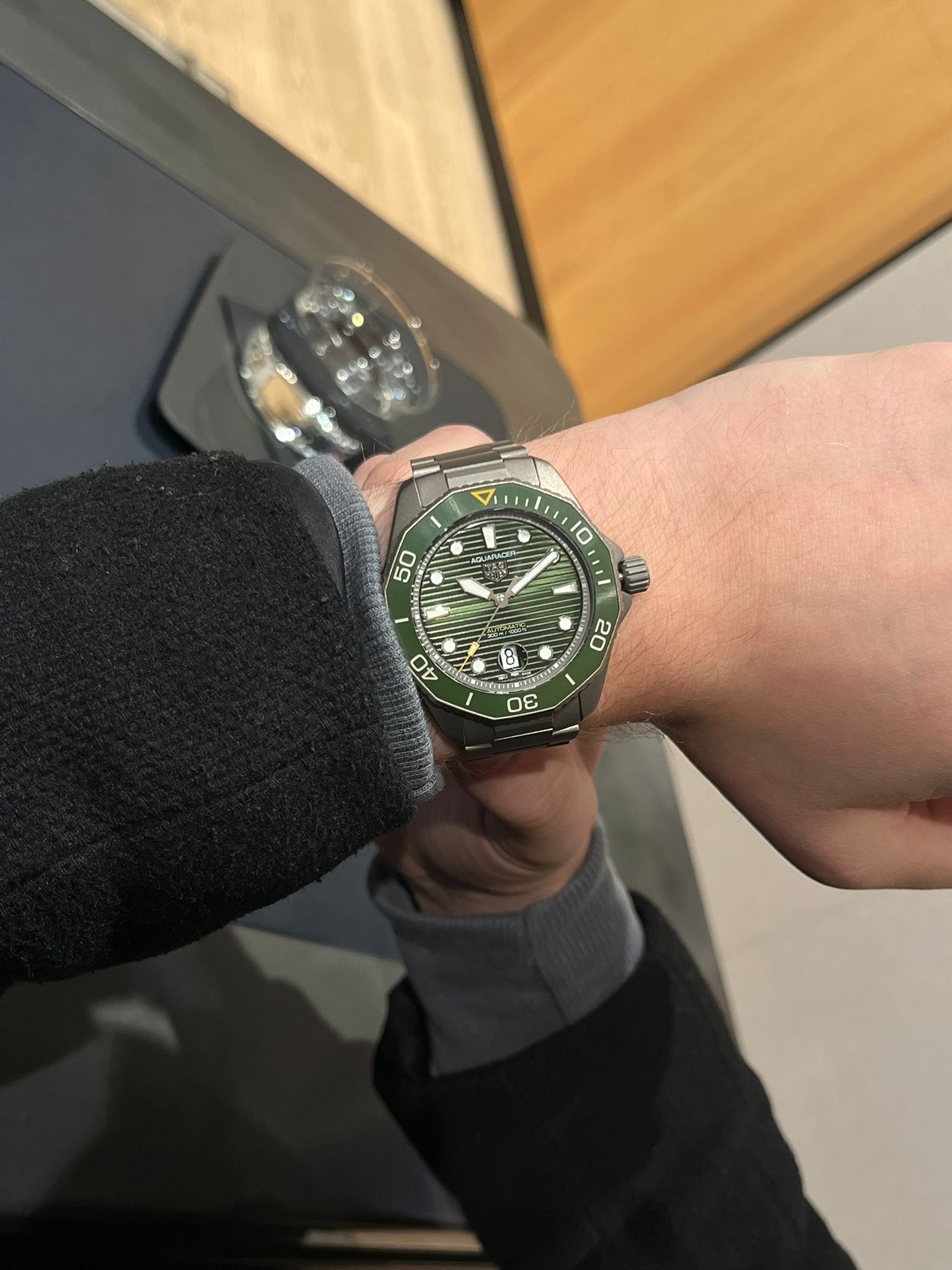 Ja die op titanium band met groene dial is een kanshebber wanneer ik terug ga in mei. Als de calibre 16 niet terug op stock is gekomen, zal deze of de carrera met donkere dial en roze goude accenten de grote voorkeur hebben.