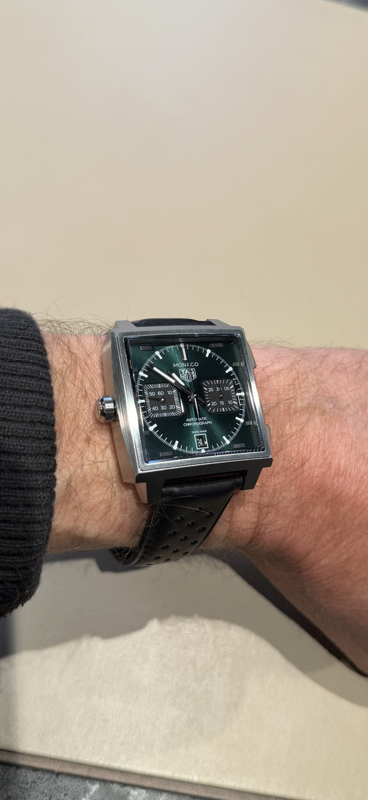 Net om gehad. Monaco’s blijven voor mij moeilijk ondanks dat het titanium z’n werk doet. Er zal er ooit wel één komen vrees ik… Deze groene zal het zeker niet worden.