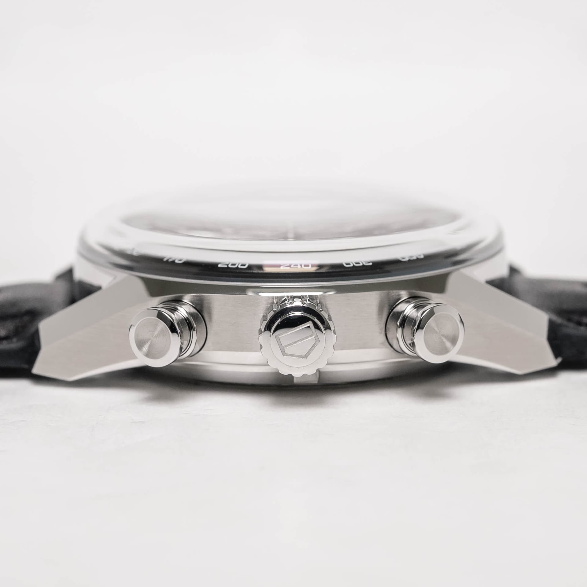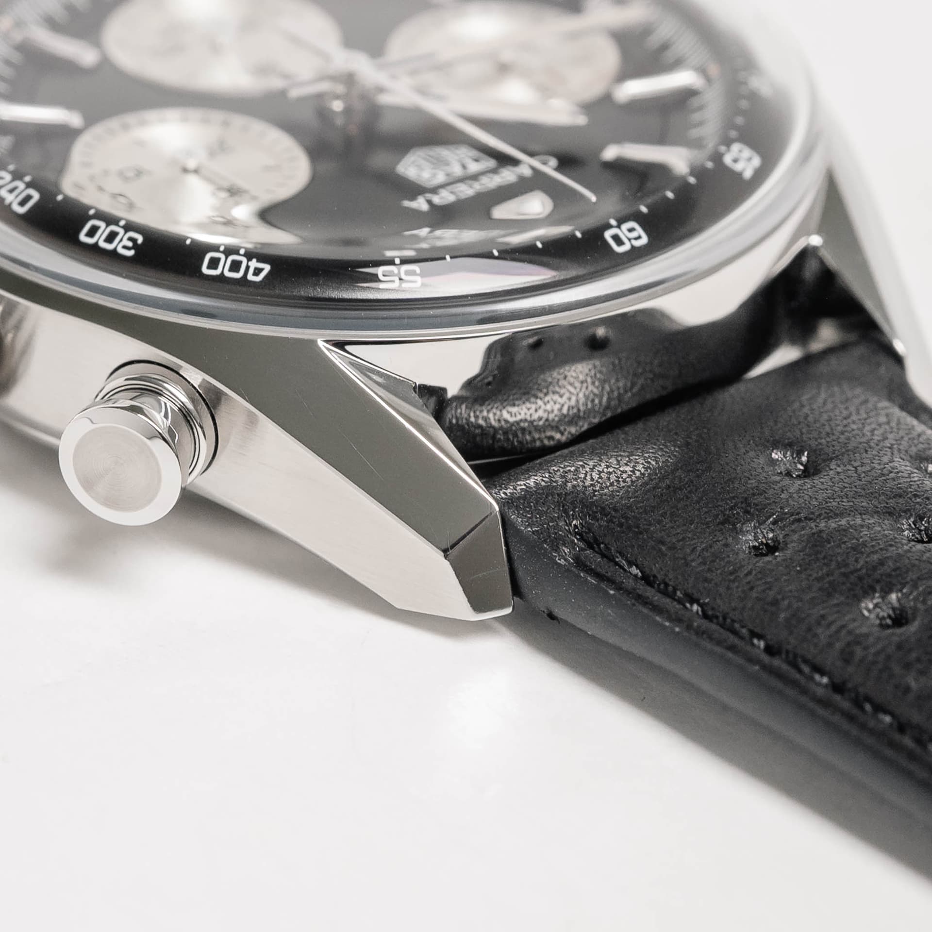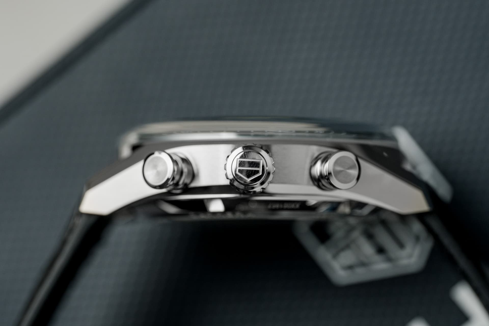 T.o.v. de “pre-Glassbox” Carrera 39mm oogt de combinatie kast plus glas als één geheel. Normaliter heb je een stapje van glas naar kast en dat ontbreekt op de Glassbox. Eigenlijk valt dat het meeste op omdat die aansluiting van glas en kast zo uniek is.