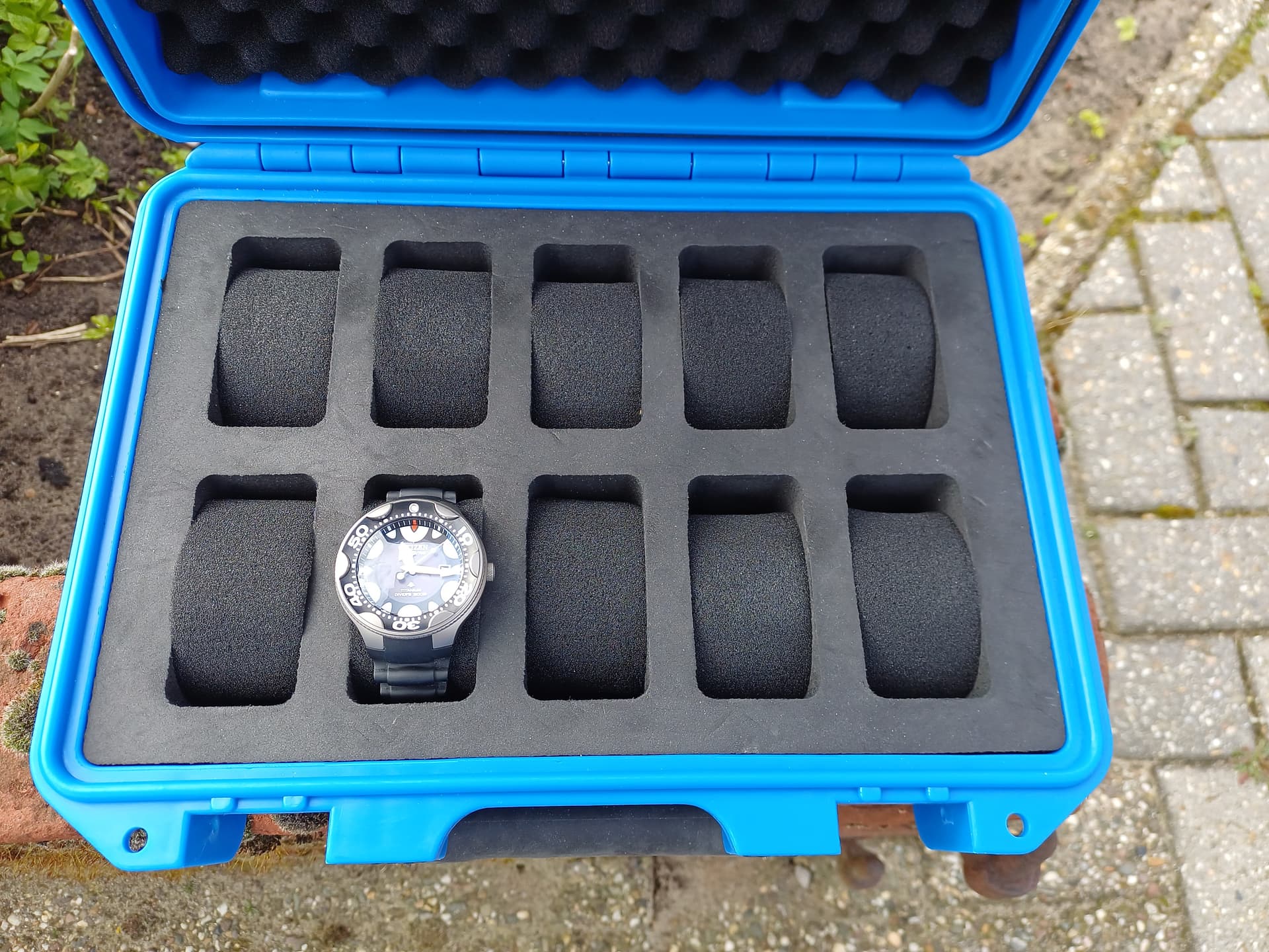 Mooie Elbrus watchcase voor 10 horloges net luchtventiel. Onverwoestbaar en waterdicht, je kent het wel…