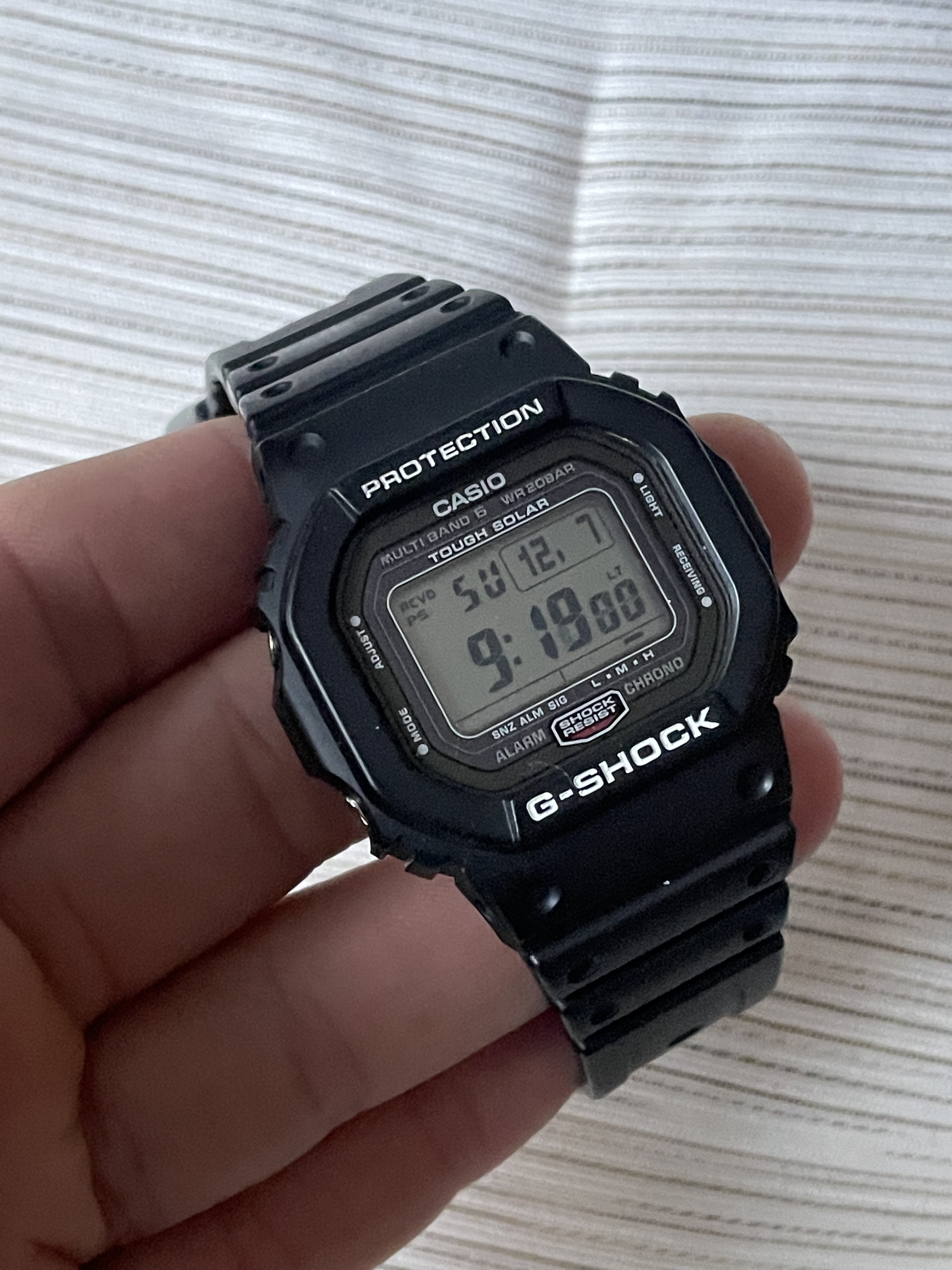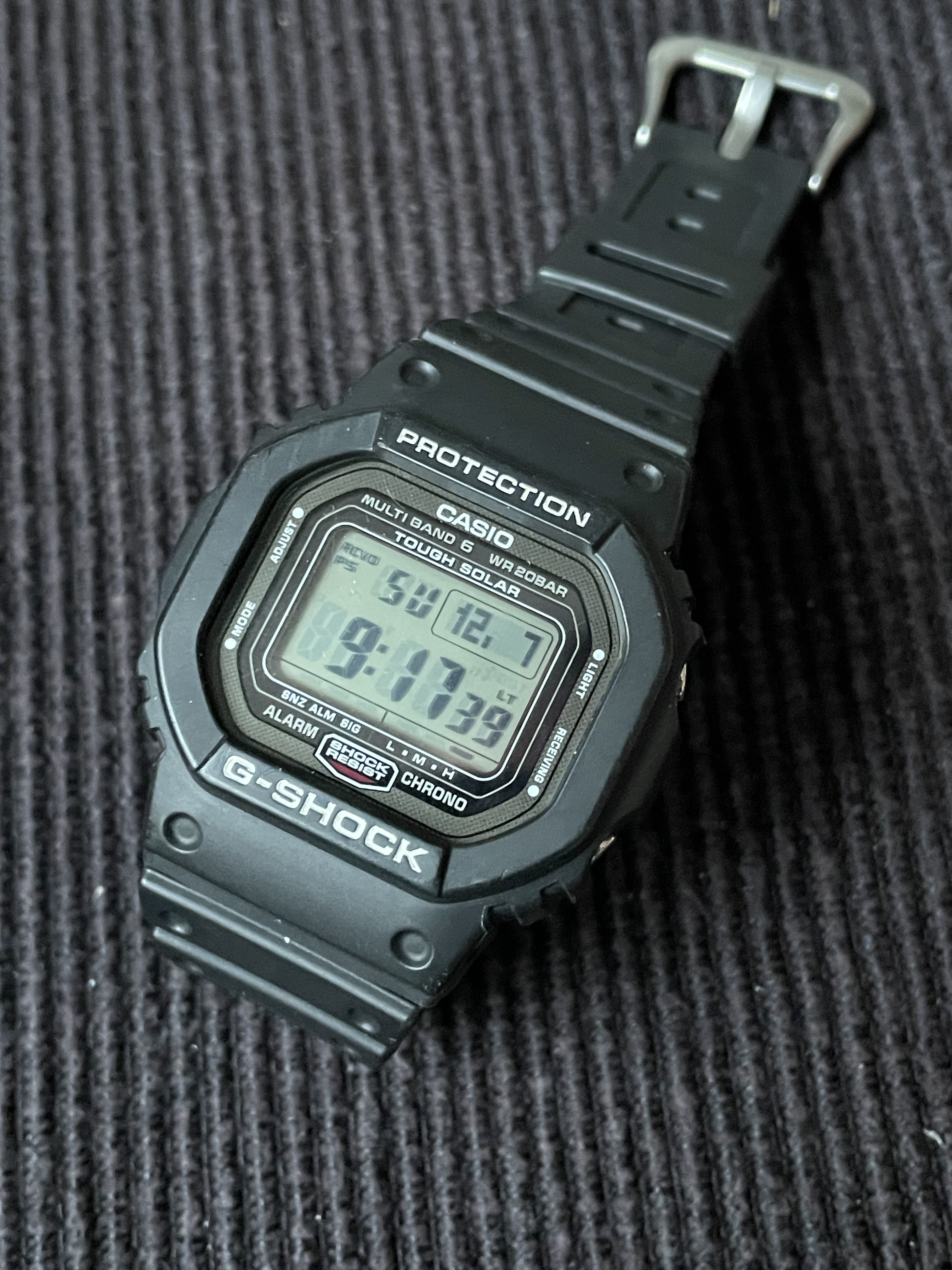 Topmodel G-Shock met solar en multiband en een hele serie functies. Dit is het ge-update model waarbij je de datum als maand/dag of als dag/maand kan weergeven. Ook staat de huidige tijd in beeld als je gebruik maak van bijv de stopwatch.