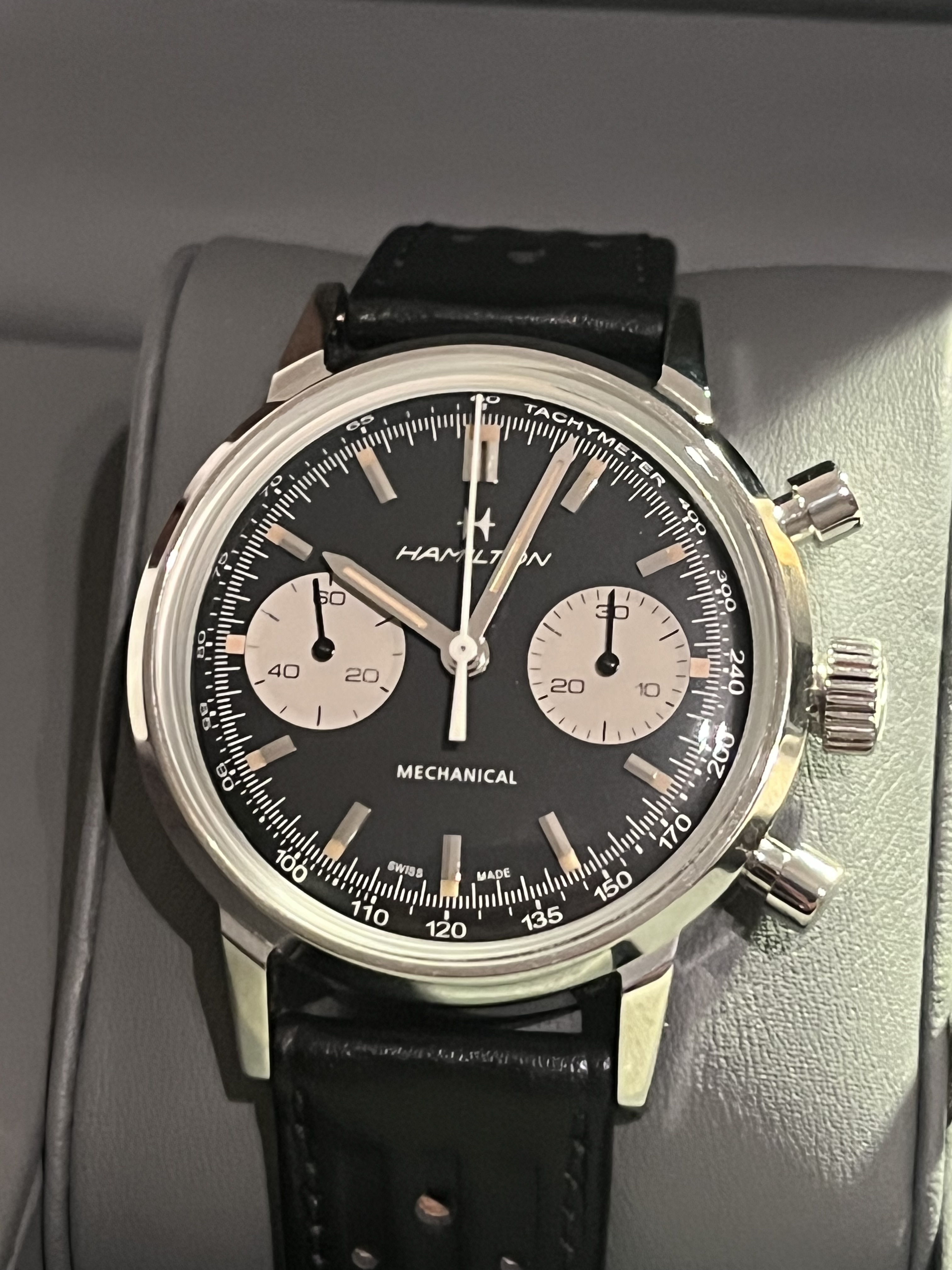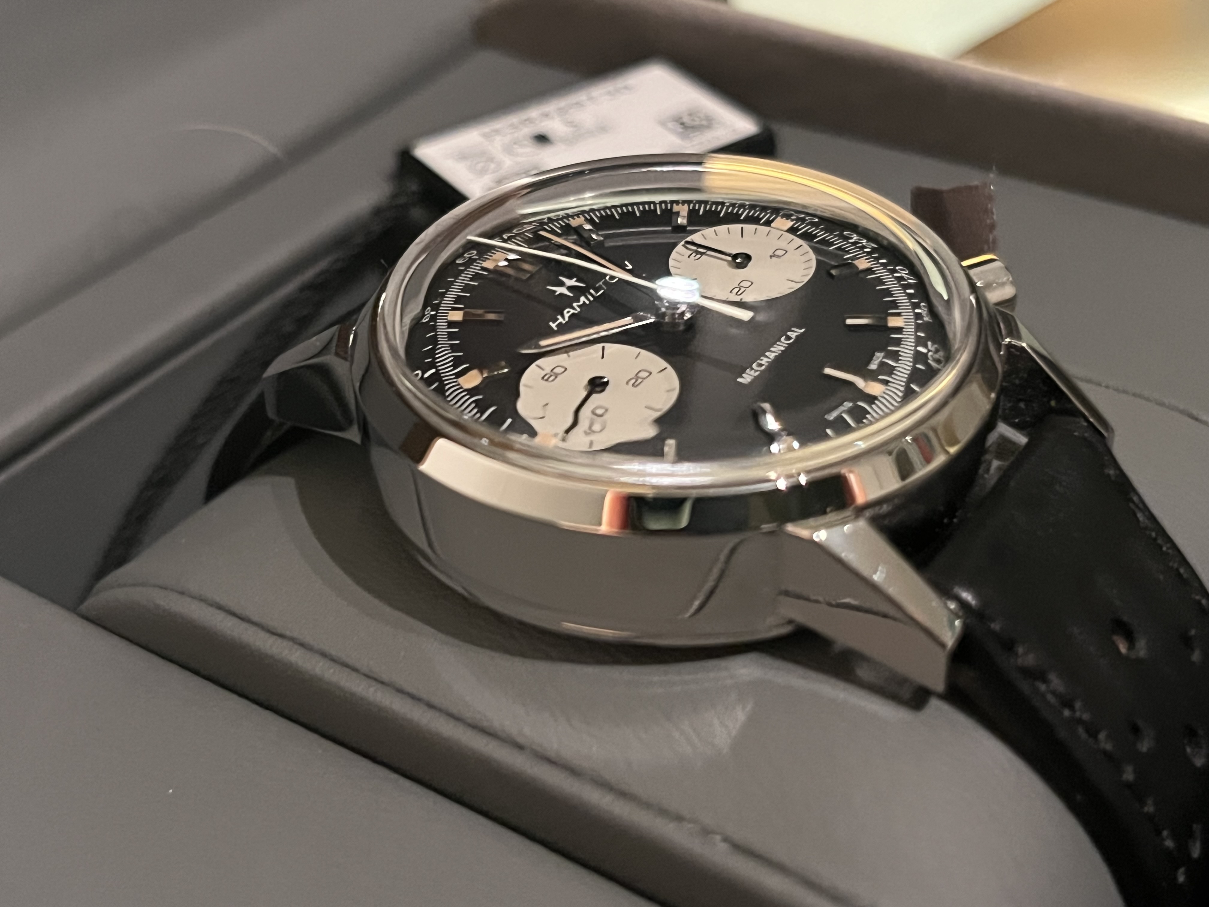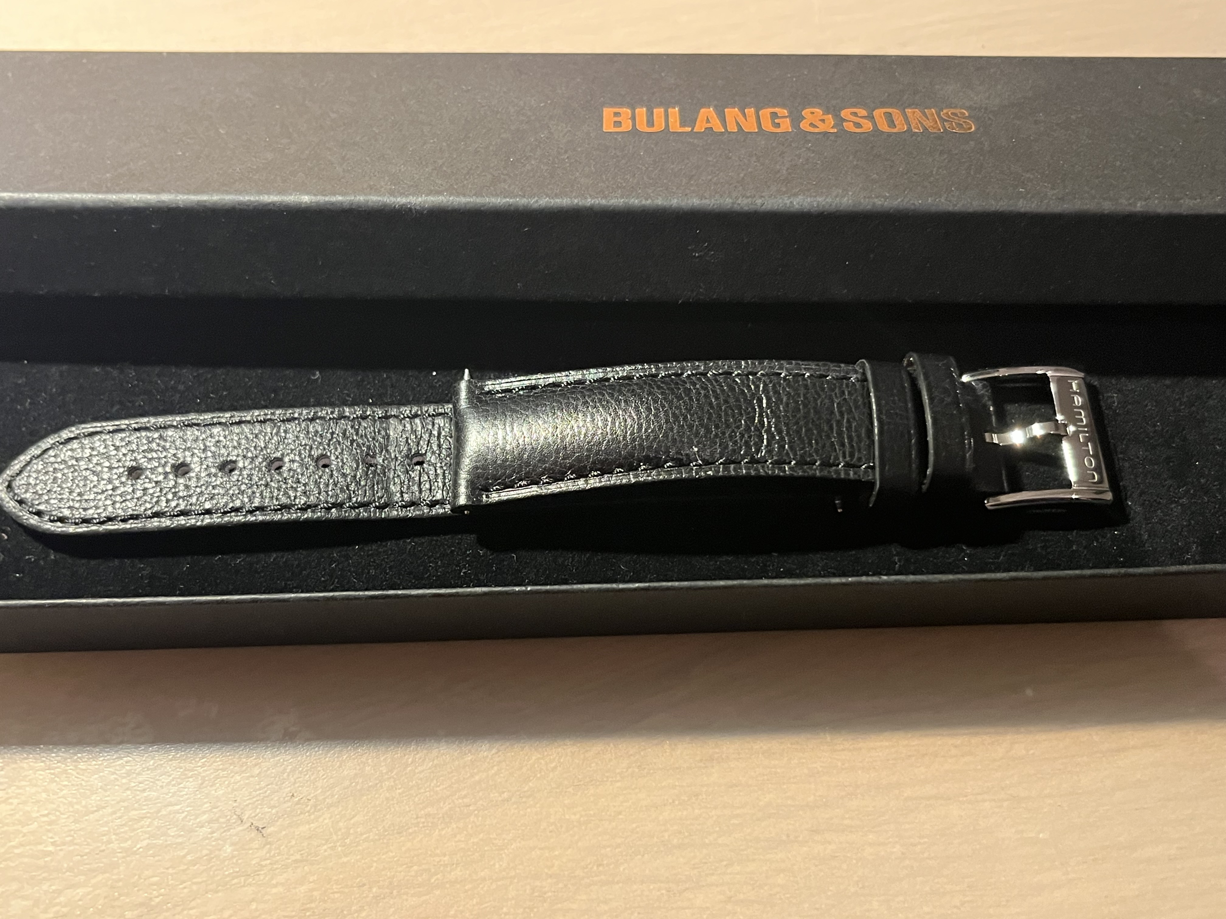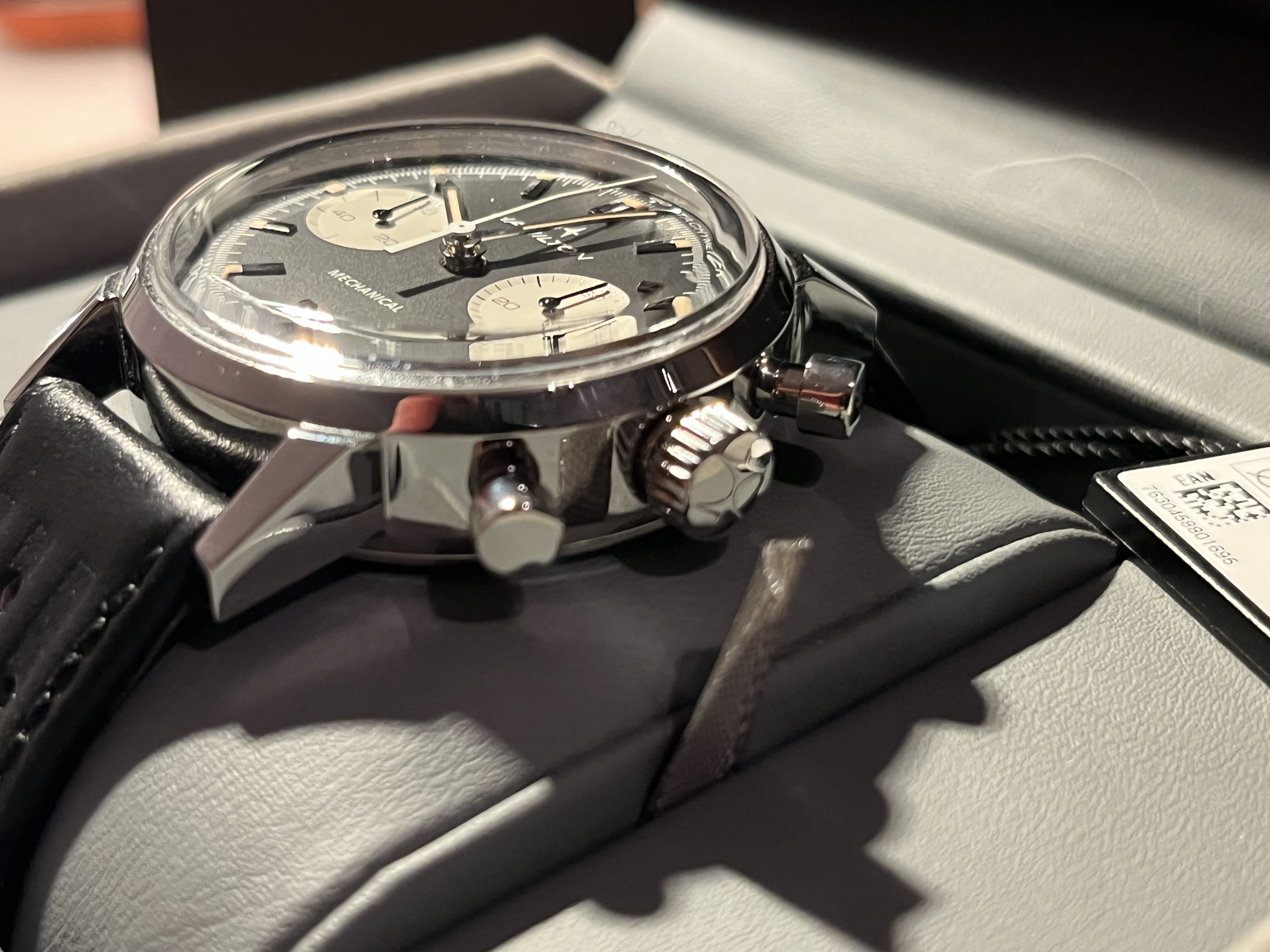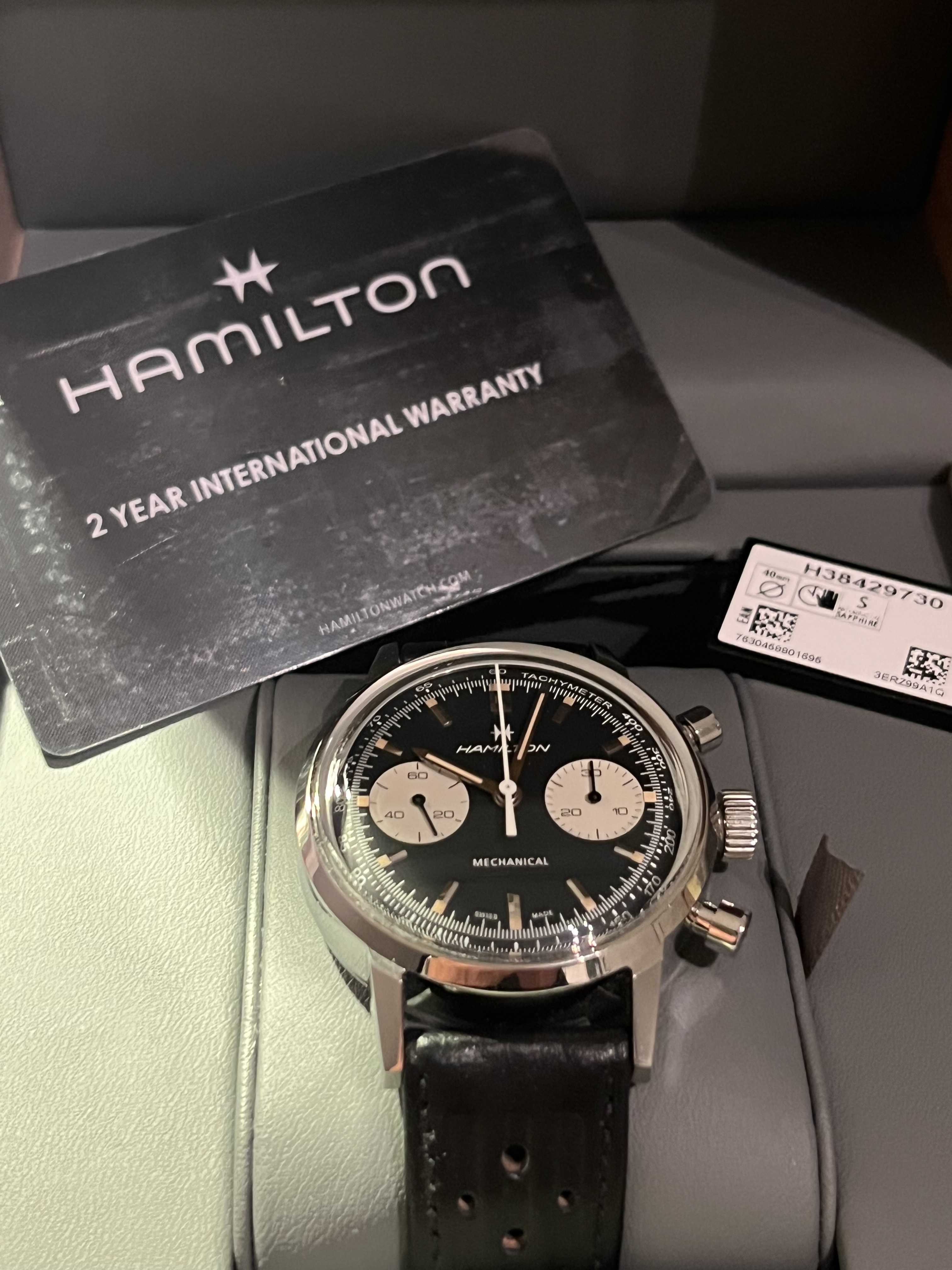 Let op de racing band zit nu op het horloge en de originele Hamilton band zit in de Bulang doos.