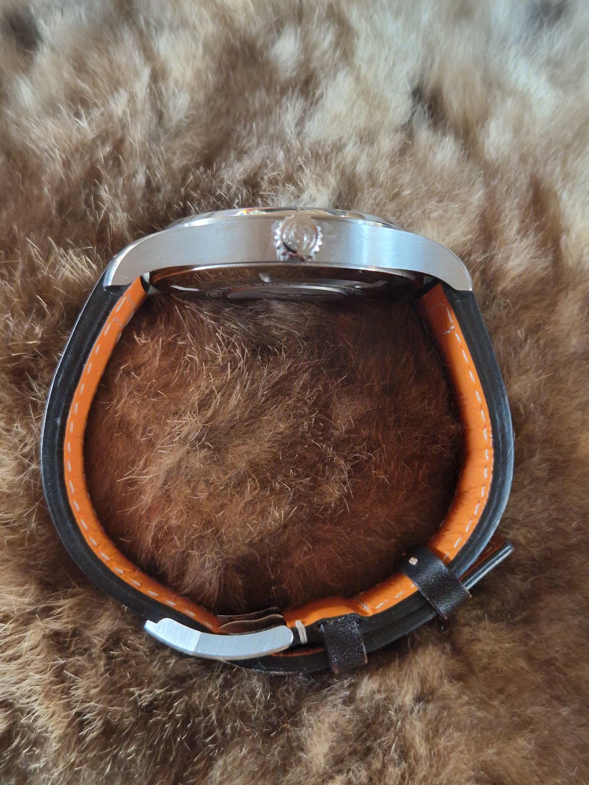 Conditie (krassen, werking etc): Goed. Er zit een klein krasje op de bezel op 3 uur. Zie foto.