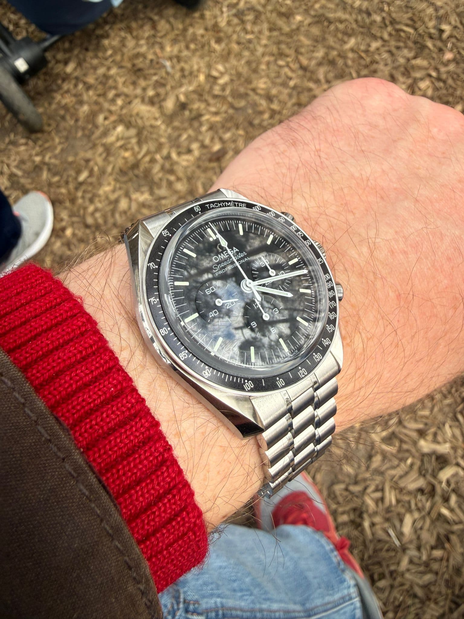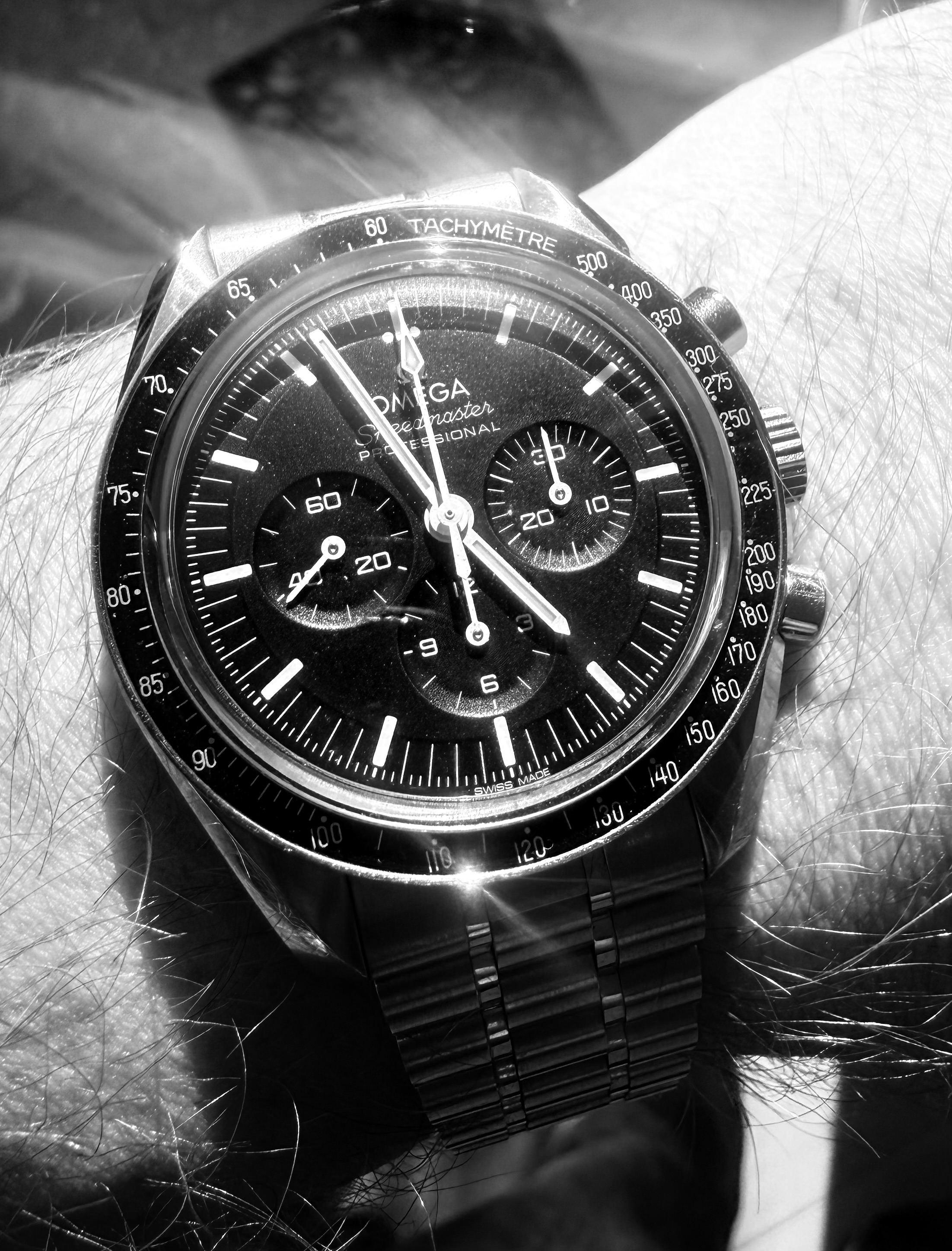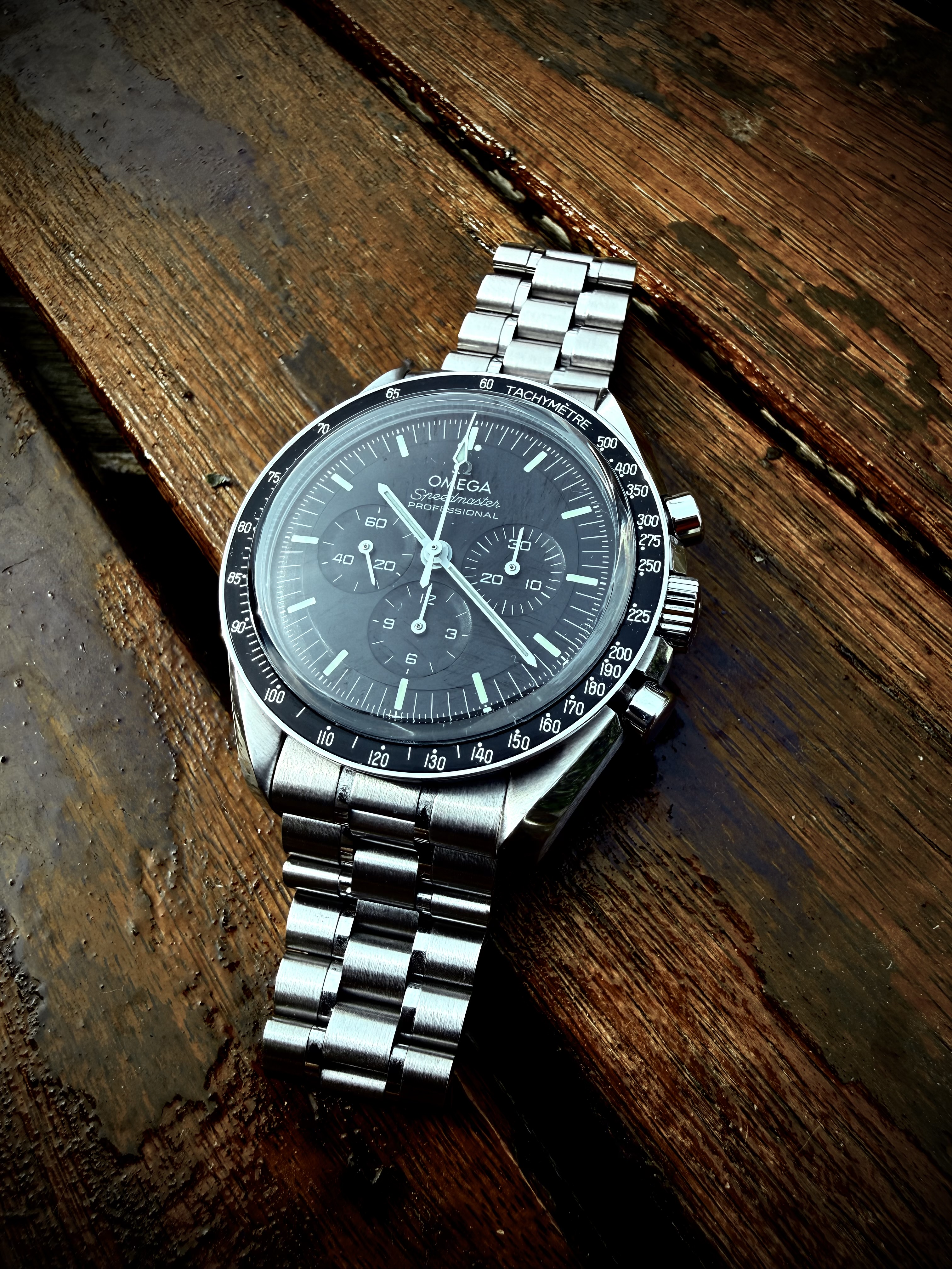 Nou. Ik ben toch gek ook. Een Speedmaster waar je mee mag zwemmen, waar wellicht de allerbeste moderne band op zit en die je zorgeloos kan dragen, want nog dik in de garantie. Iconisch design en werkpaardkarakter. En dan dubbel saffier met uitzicht op het geweldige uurwerk en het opgelegde logo.
