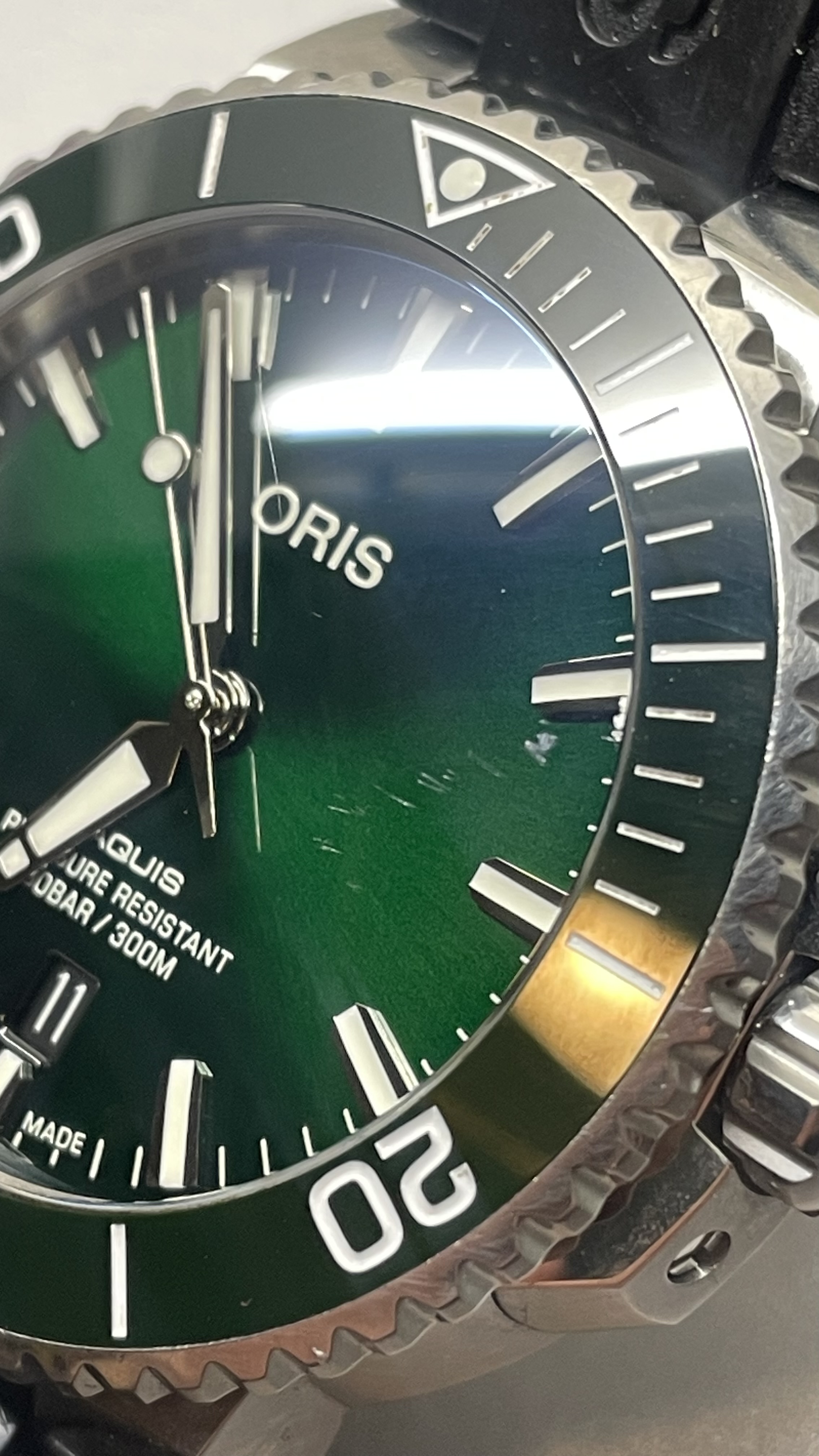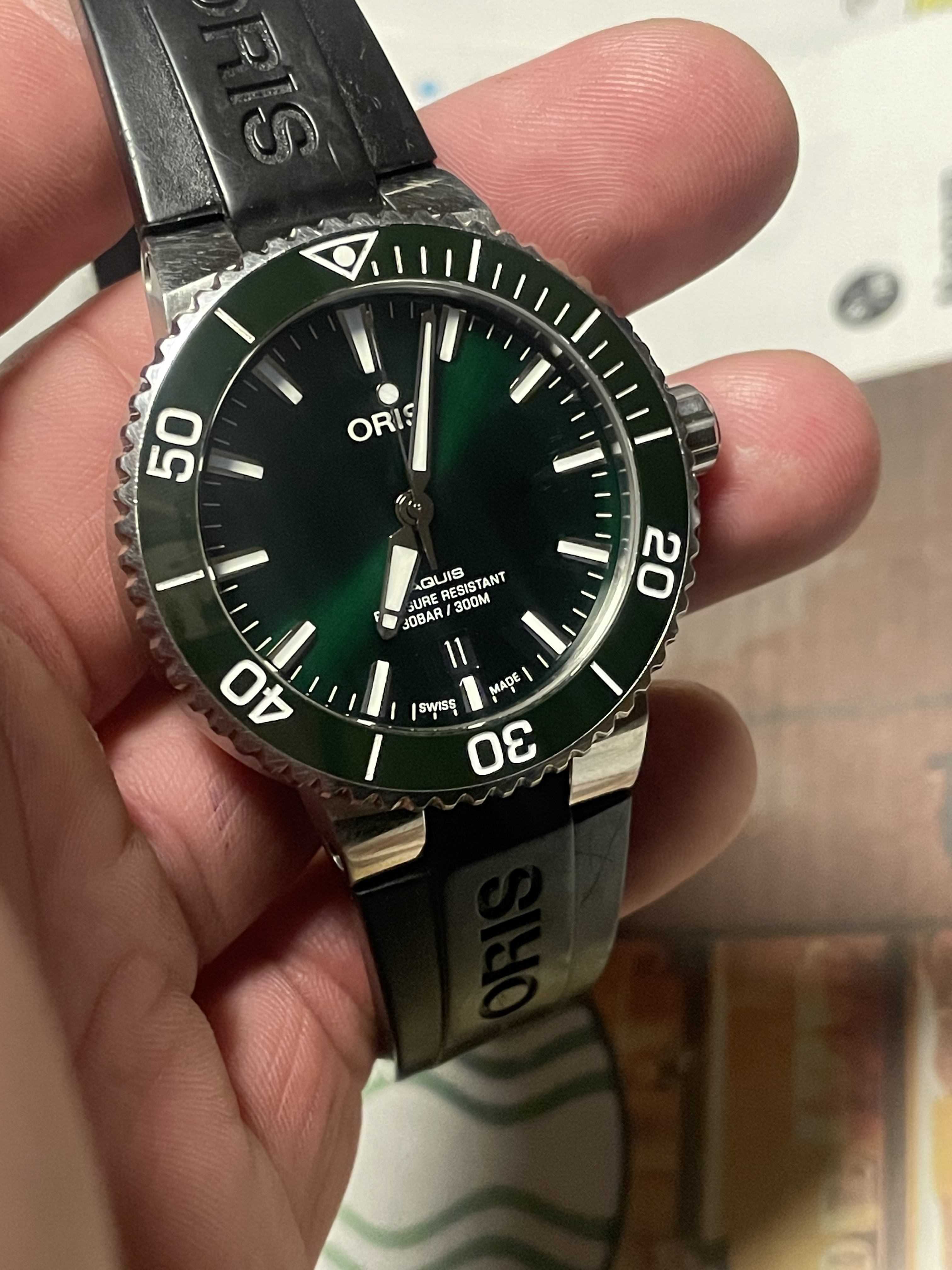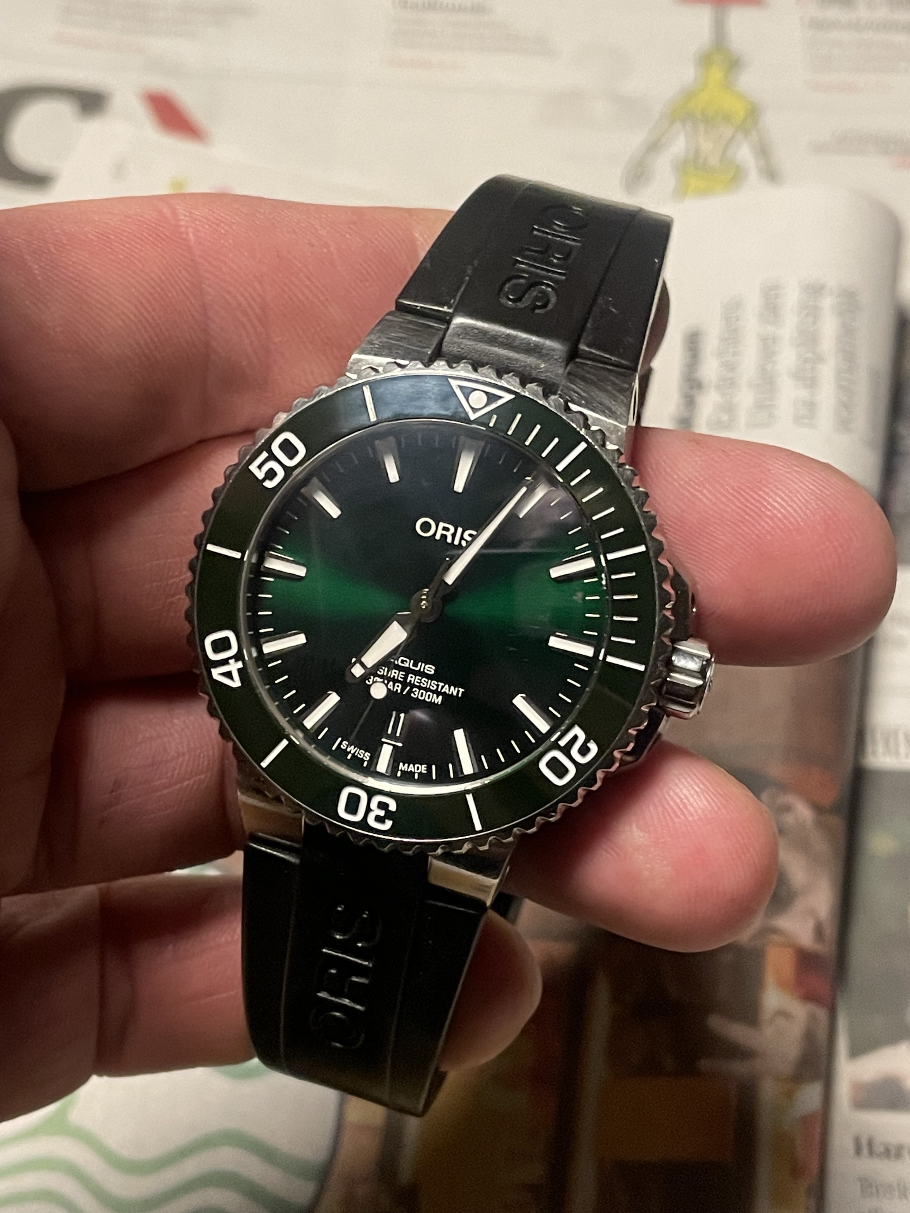 Oris Aquis in de prettige maat van 41.5mm. Het groen is in het echt heel mooi, ik krijg dat niet zo goed op de foto.
