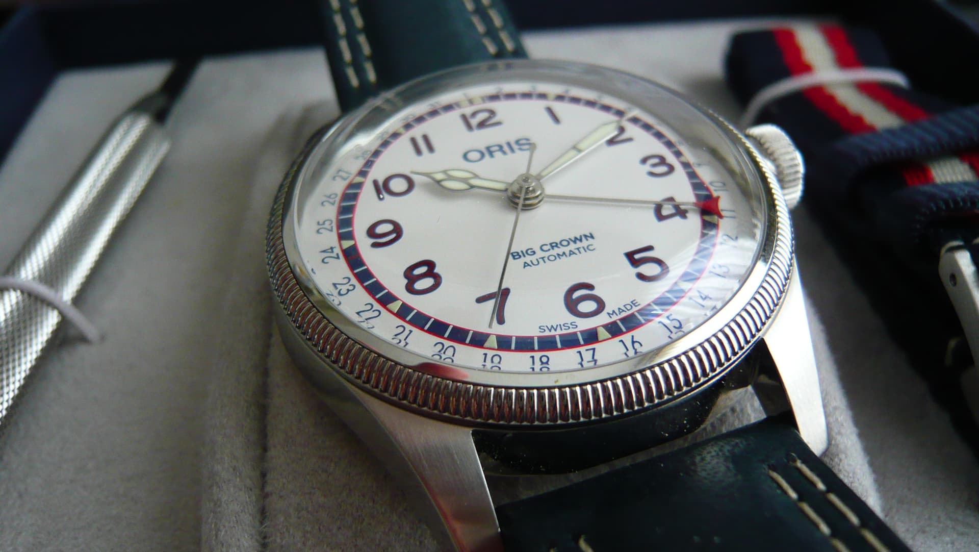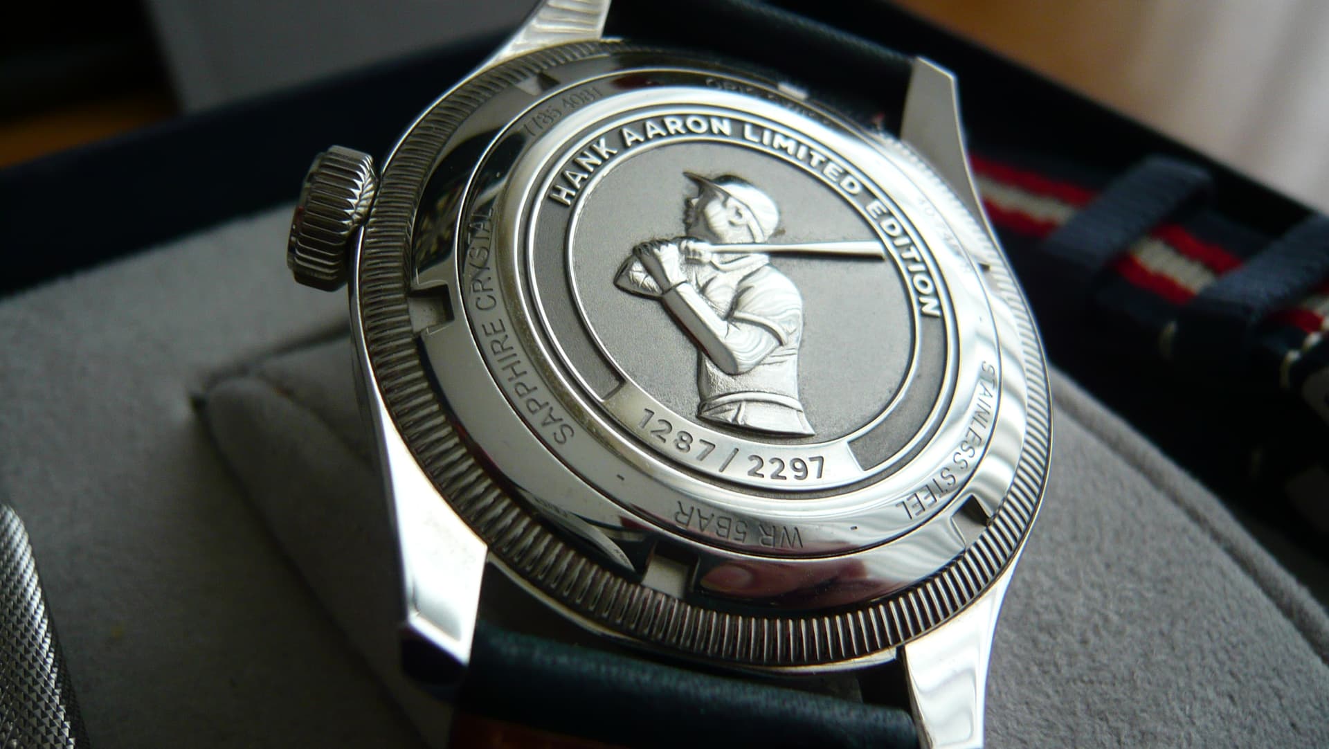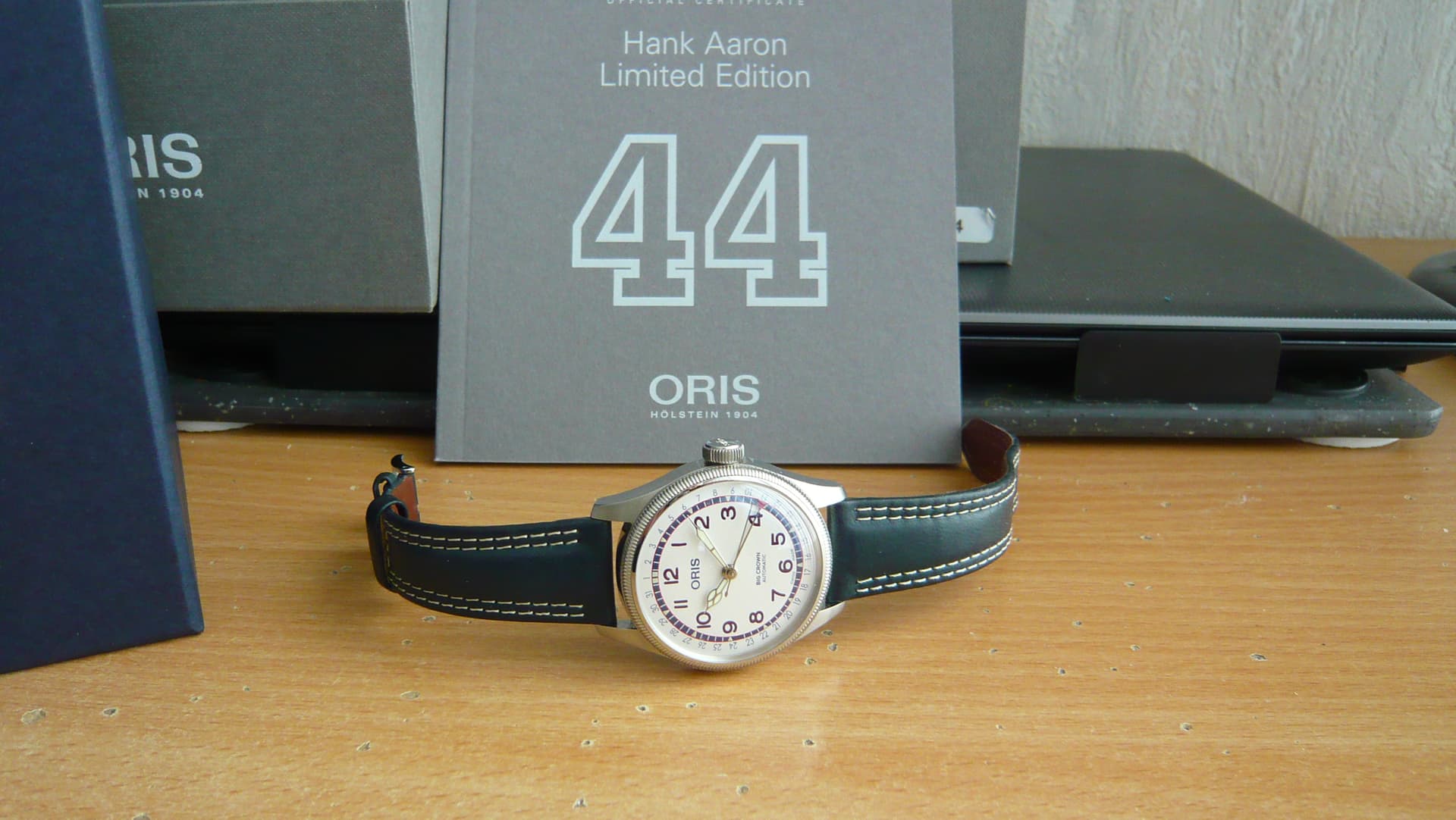 Je zou zeggen die doet hij nooit weg. Niets is zo veranderlijk dan een mens. Mijn manie voor horloges is sterk afgenomen mede omdat ik niet altijd op deze aardbodem zal bijven rondlopen en ik mijn vrouw en dochter niet wil laten zitten met zaken waar ze gewoon niets mee hebben. Ik ben dus flink aan het afbouwen. Een ltd versie van de Pointer date van een legende. Een hele mooie uitvoering ook al heb je niets met honkbal.